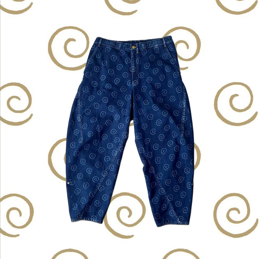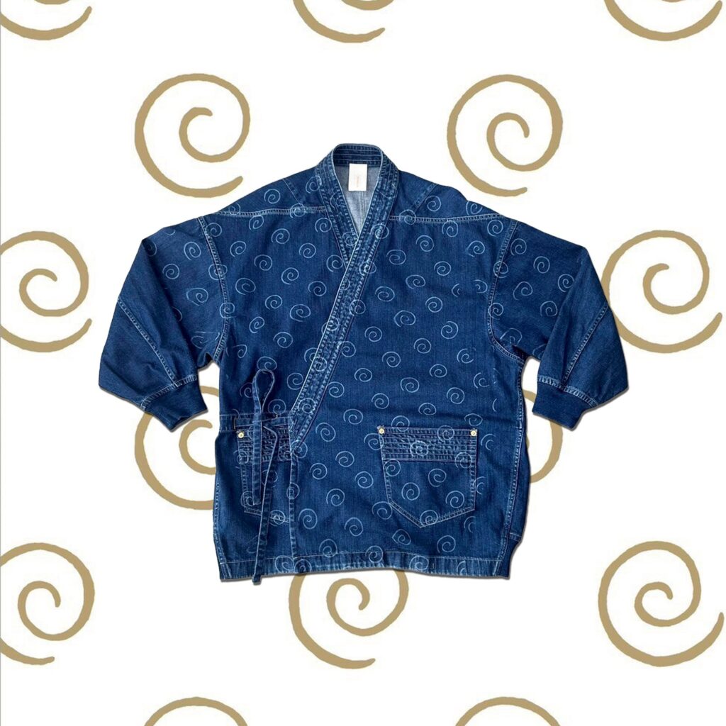 本物のバカボンのうず柄の作務衣が着たい。そんな想いが実現しました。一番最初に思い描いたアイテムです。きっと赤塚先生が着たら、似合っただろうな♡オーガニックコットンのデニム素材で全面だけ製品で一枚一枚加工した、こだわりのもの。上下で着ても、ジャケットだけでもパンツだけでも。楽しい気持ちになること間違いないです。ジャケットはユニセックスでワンサイズ。パンツは通常のFサイズ(Freeサイズ)と、大きめのSBサイズ(Special Bigサイズ)があります。