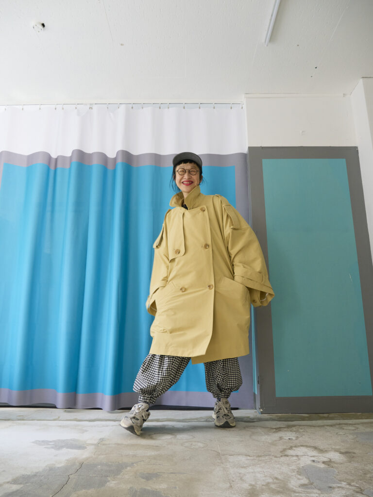 We created our popular kimono-sleeve trench coat in a mustard color that evokes the freshness of spring.