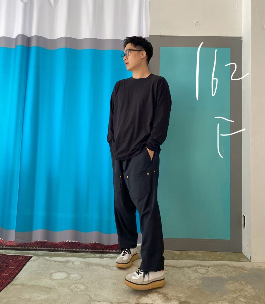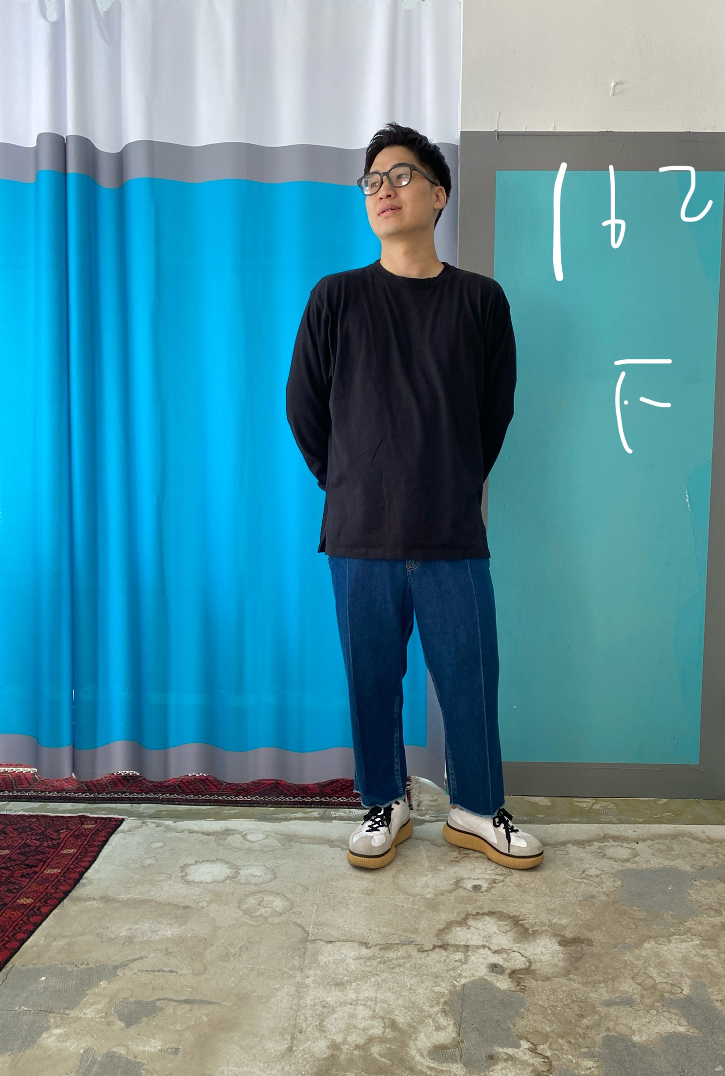 Crafted with a meticulous pattern, it appears sleek despite the larger dimensions. The F size is also designed to be easygoing. The length is balanced for easy pairing with various bottoms. Whether you tuck the front into your bottoms or wear it as is, the thoughtfully designed long T-shirt maintains a distinctively clean silhouette.