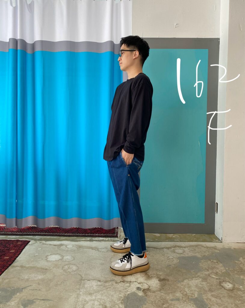 model 160cm sizeSB New Round Shape Denim Pants sizeF indigo