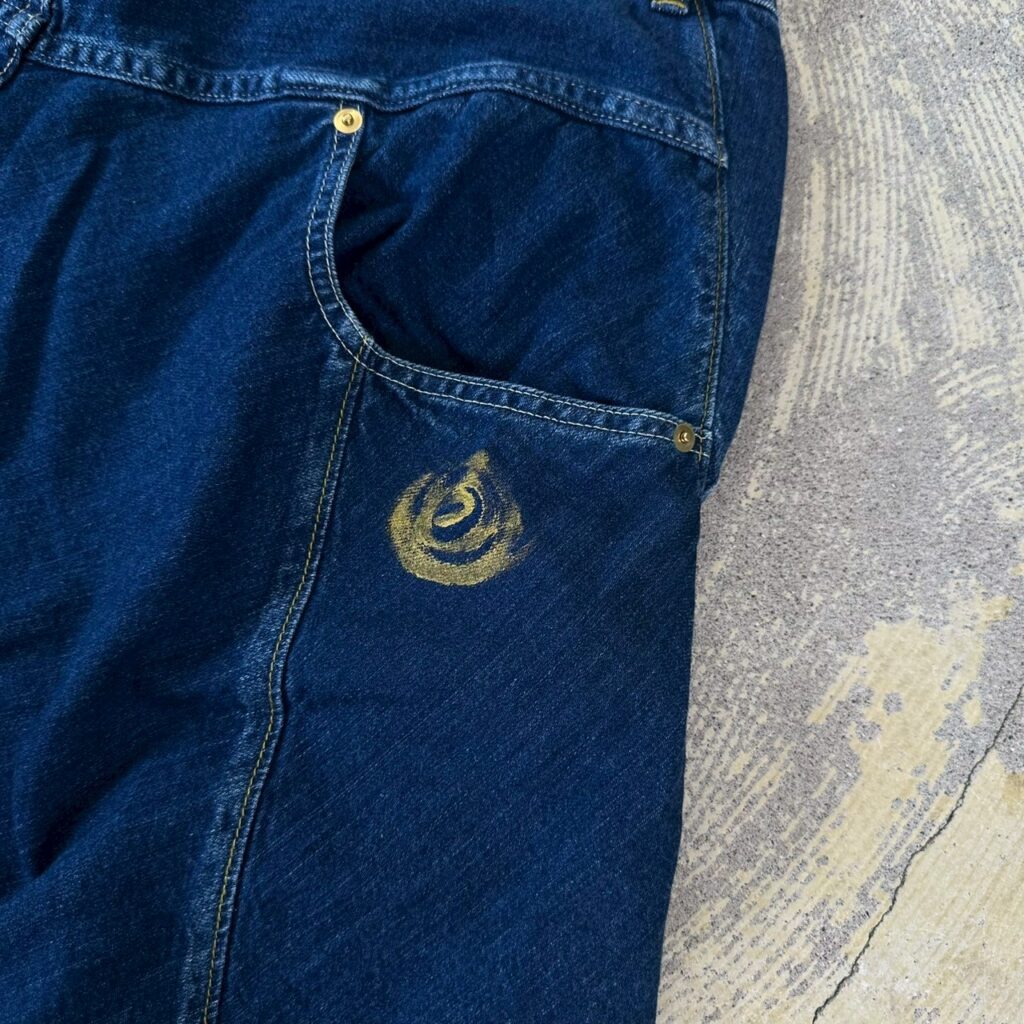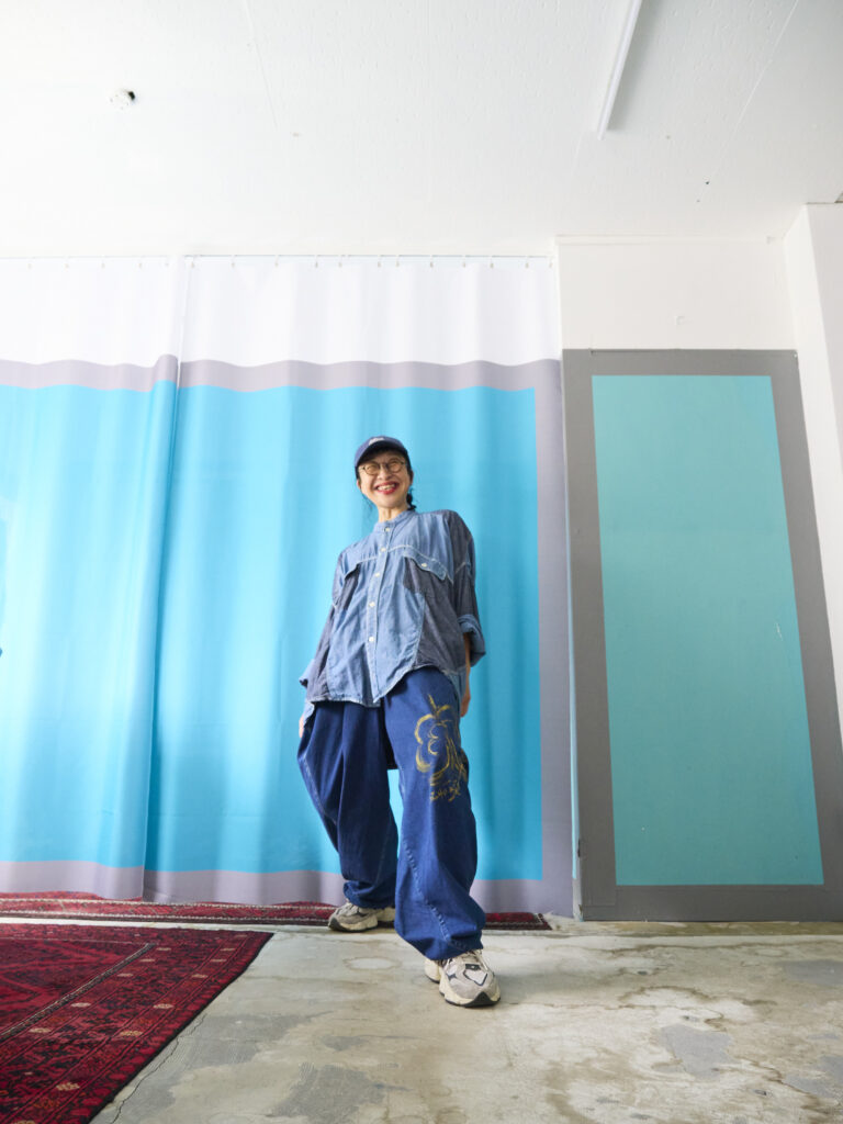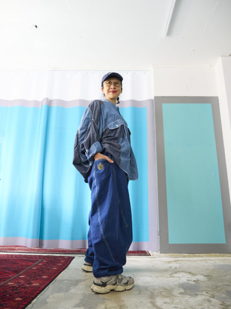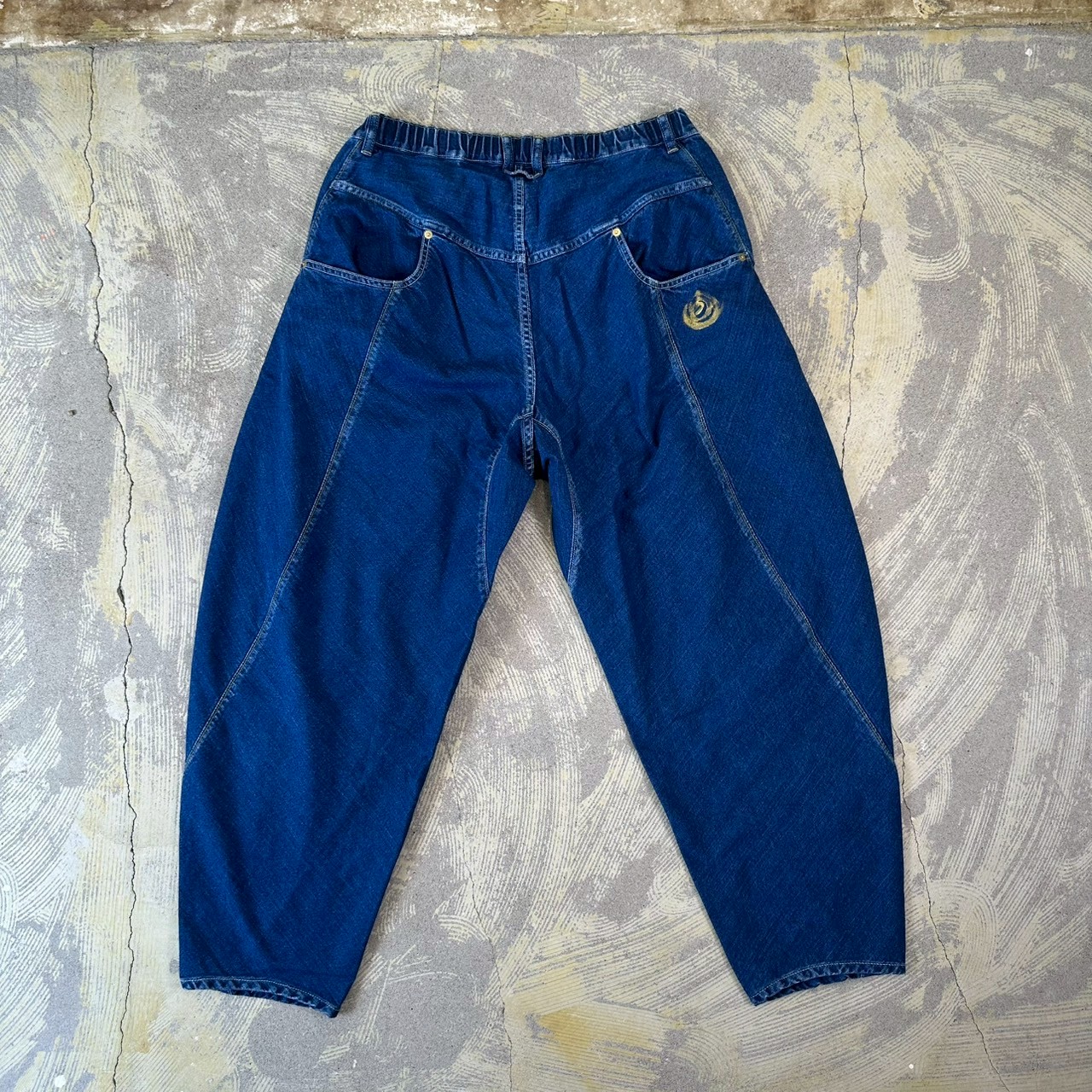 And with that feeling growing inside me, I was inspired to paint a “Tree of Thanks.”[Size]Total length:109cm,Hip: 126cm,Rise: 41cm,Inseam: 74cm,Hem circumference: 39cm,Minimum waist (elastic): 72cm,Maximum waist(elastic): 98cm[Material]100% Organic Cotton[Color]Tree of Thanks Denim size SB
