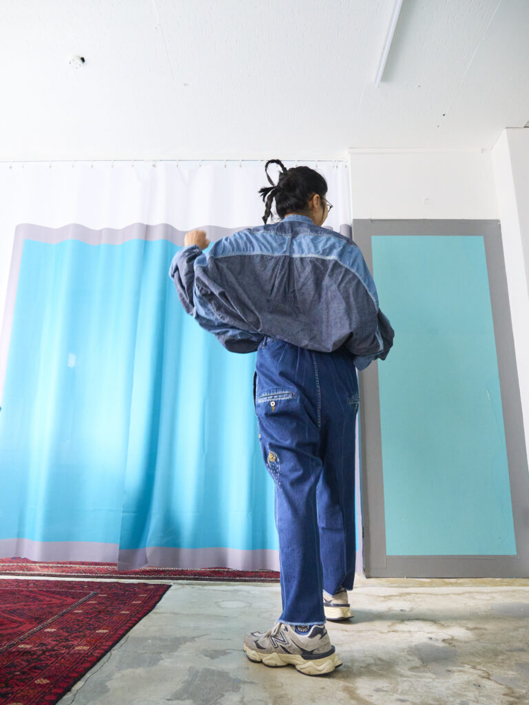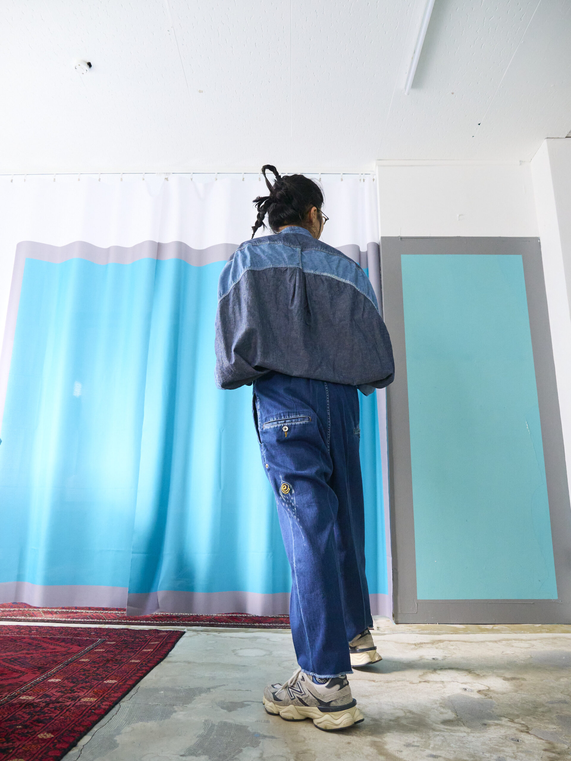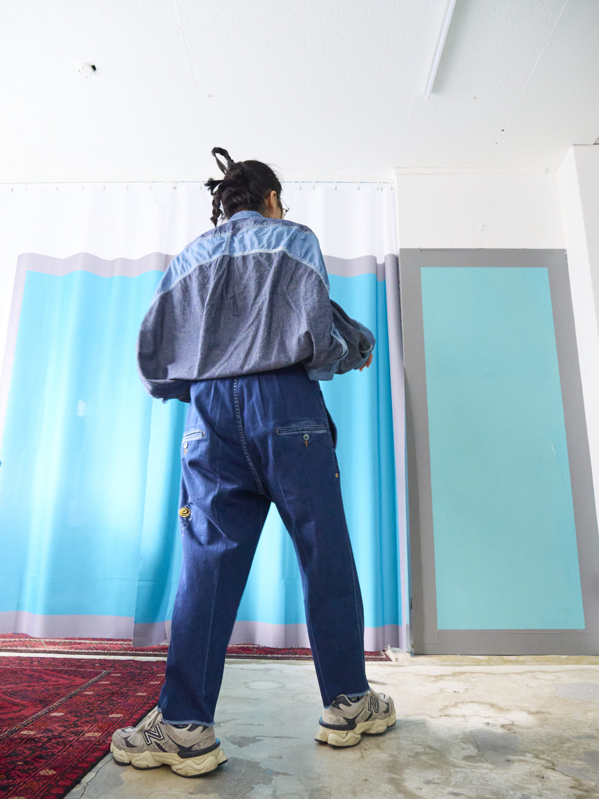 That’s the feeling I tried to capture in this piece.[Size]Total length: 87cm,Hip: 103cm,Rise: 38cm,Inseam: 54cm,Hem circumference: 41cm,Minimum waist (elastic): 66cm,Maximum waist (elastic): 80cm[Material]