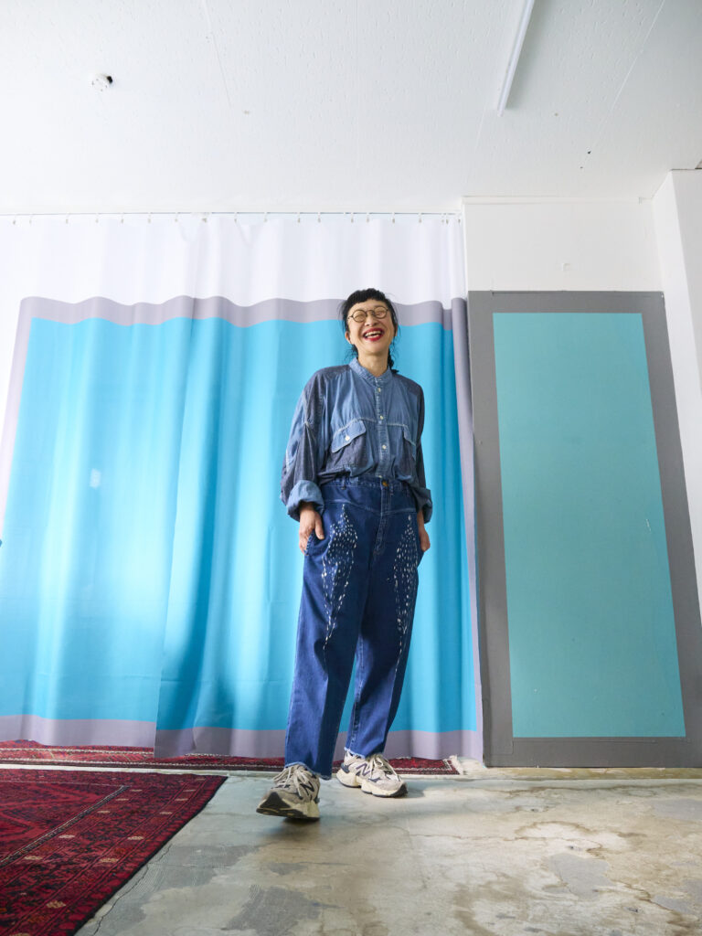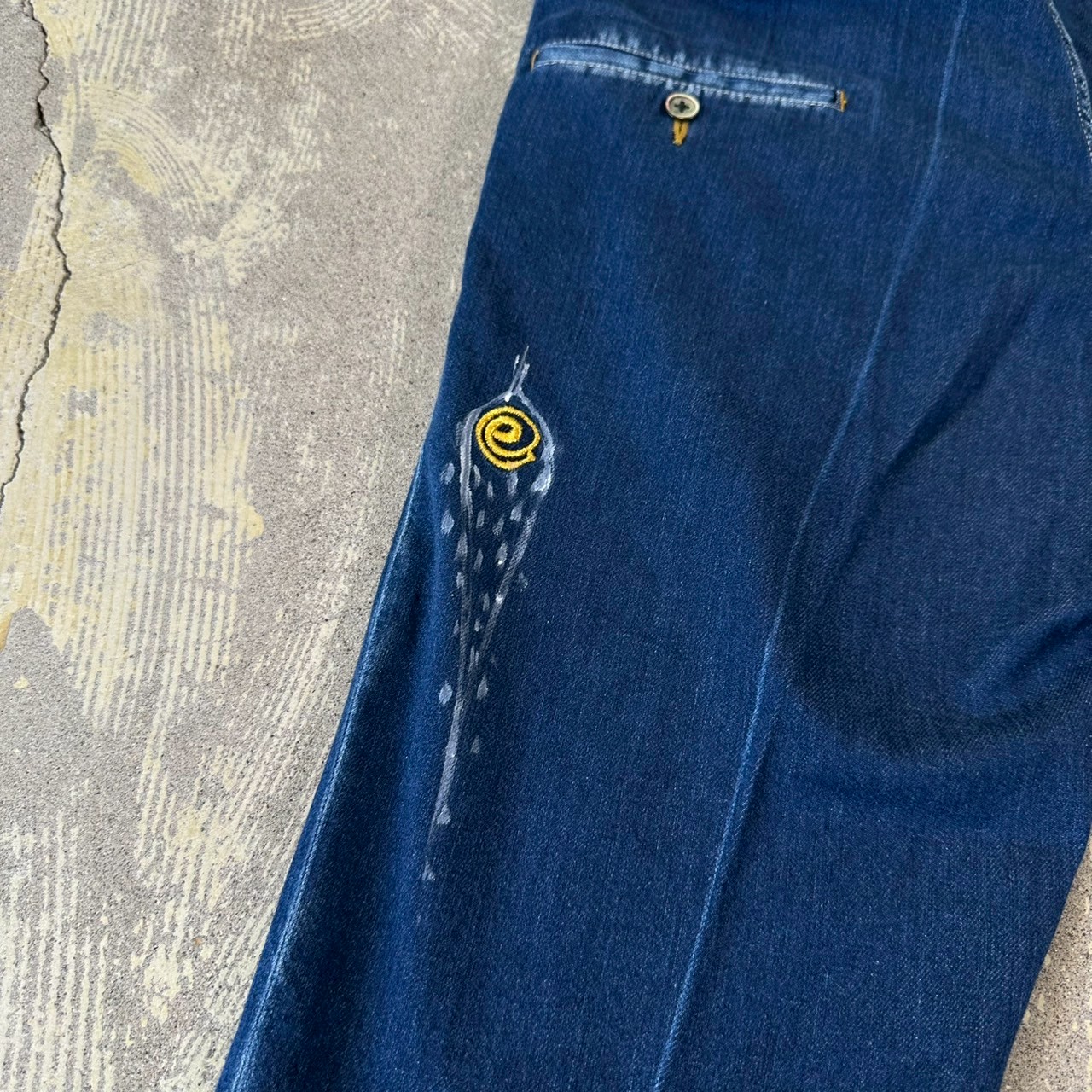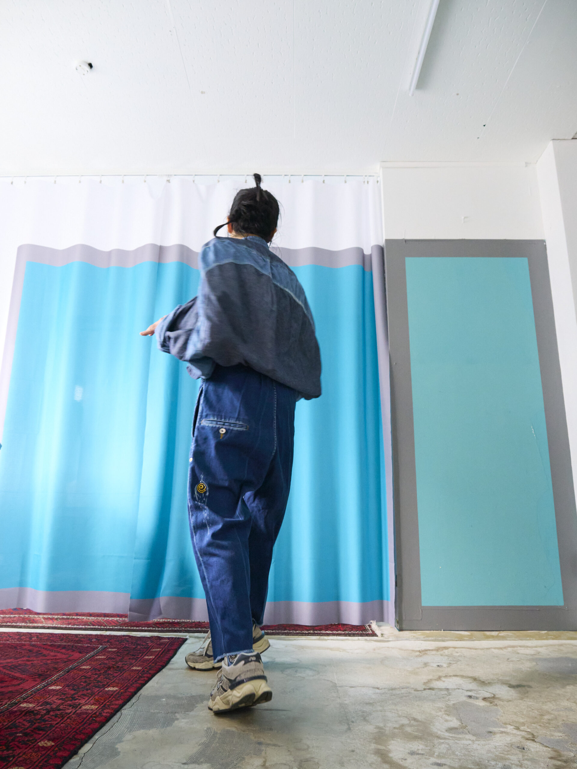 That’s the feeling I tried to capture in this piece.[Size]Total length: 87cm,Hip: 103cm,Rise: 38cm,Inseam: 54cm,Hem circumference: 41cm,Minimum waist (elastic): 66cm,Maximum waist (elastic): 80cm[Material]