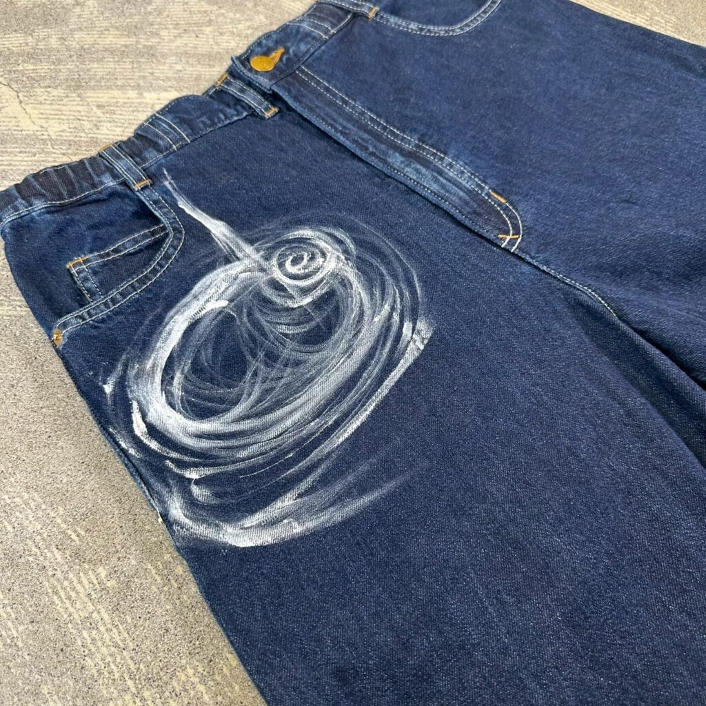 The base is the Motteke Droboo! Denim Pants in size F, shortened in length, with the hem hand-stitched by Utsugi.