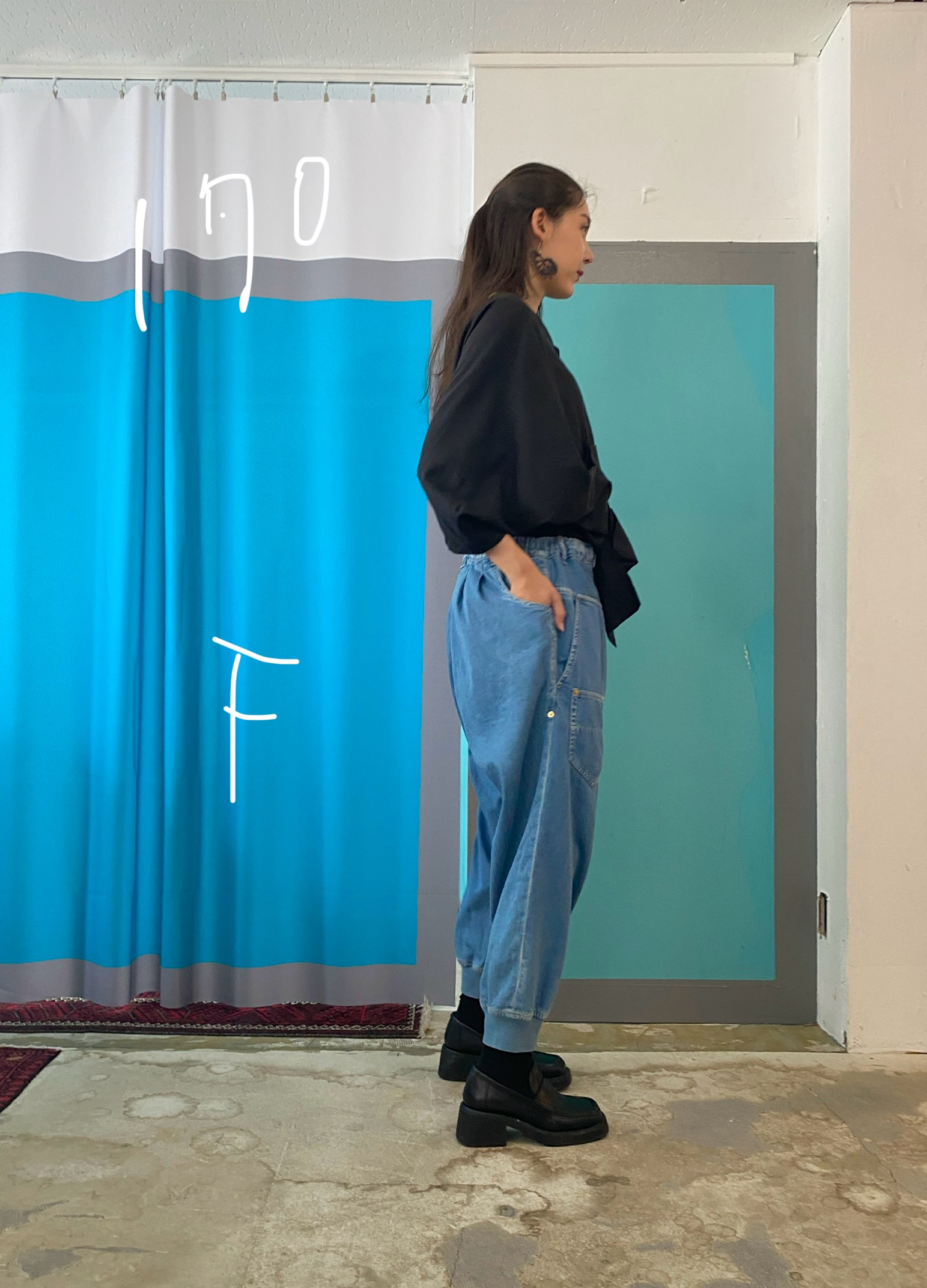 model 156cm Tailored Denim Pants Twist Rope Ribbon High Socks Khaki