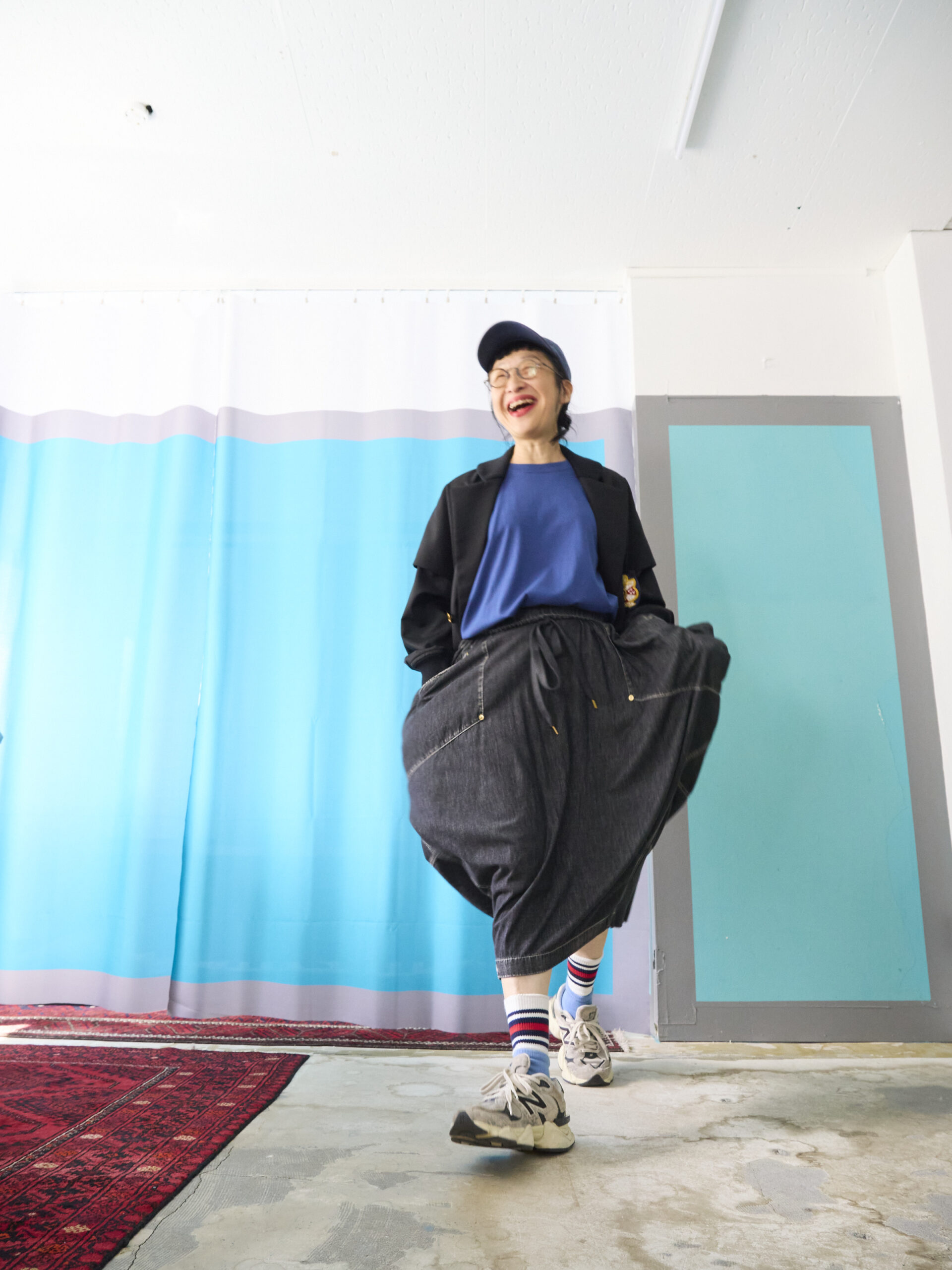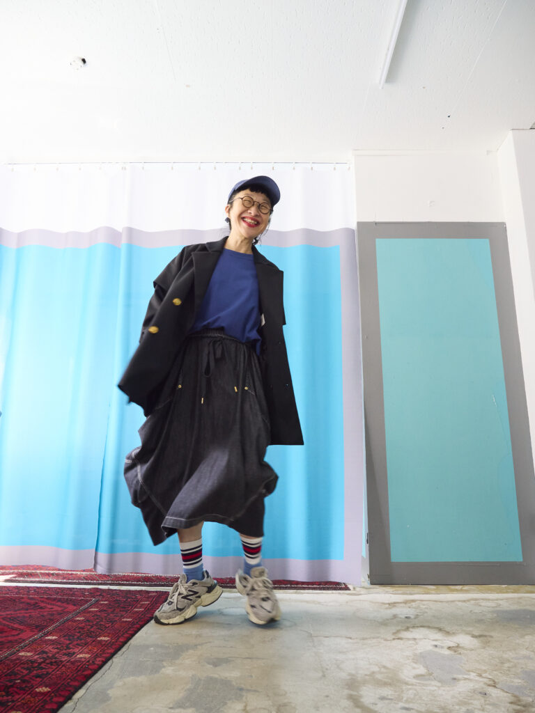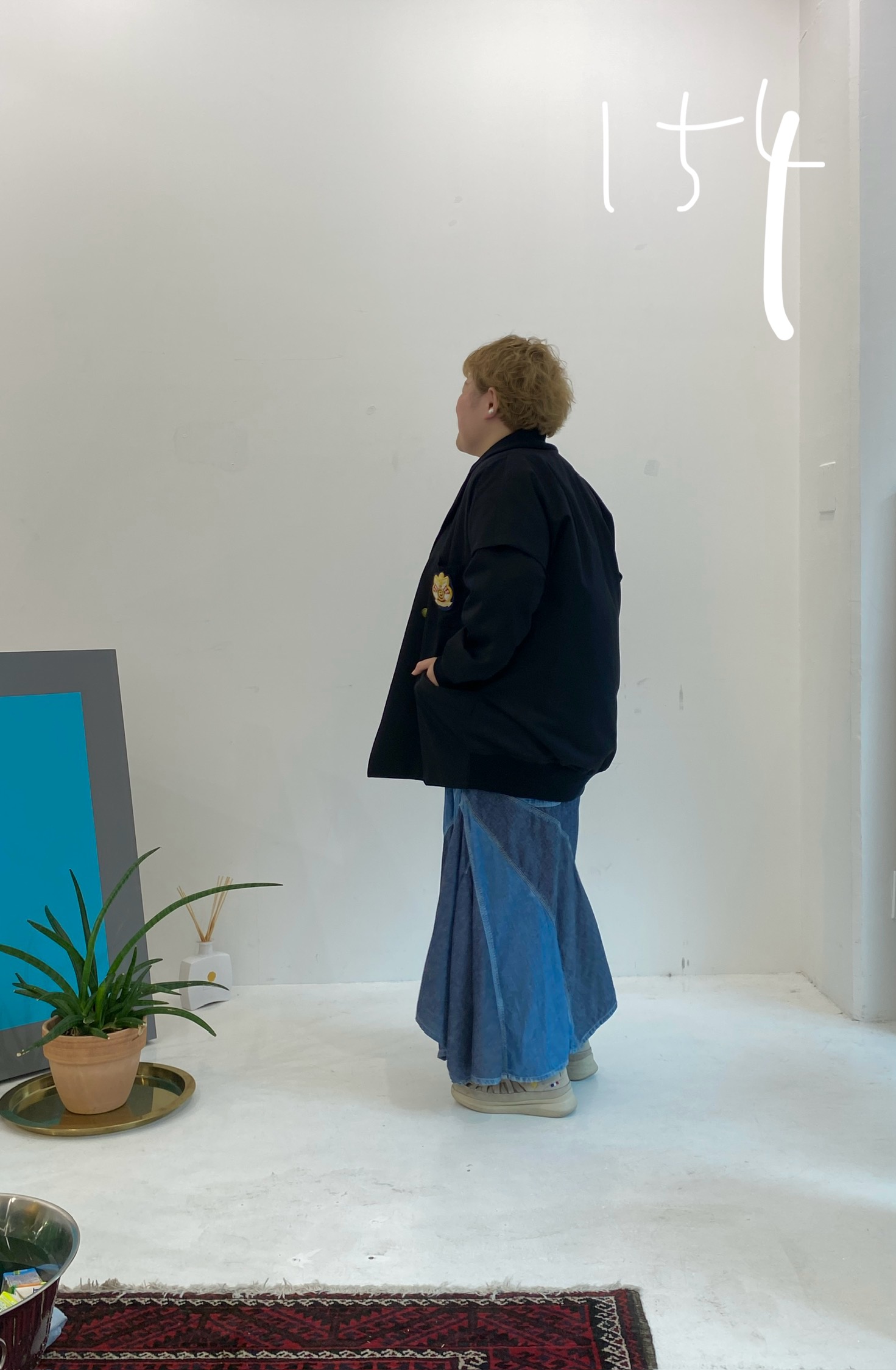 model 156cm Motteke Droboo!T-shirt Strait blue size01 Honeycombs Denim skirt Black eriutsugi patch socks
