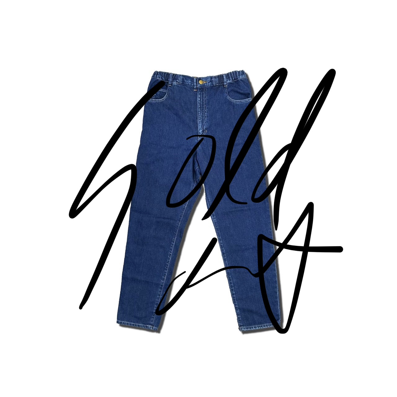 ウエストは調節可能なゴム使用。幅広いサイズの方々が着用できる、ユニセックスで日本の岡山県児島縫製のデニムパンツです。