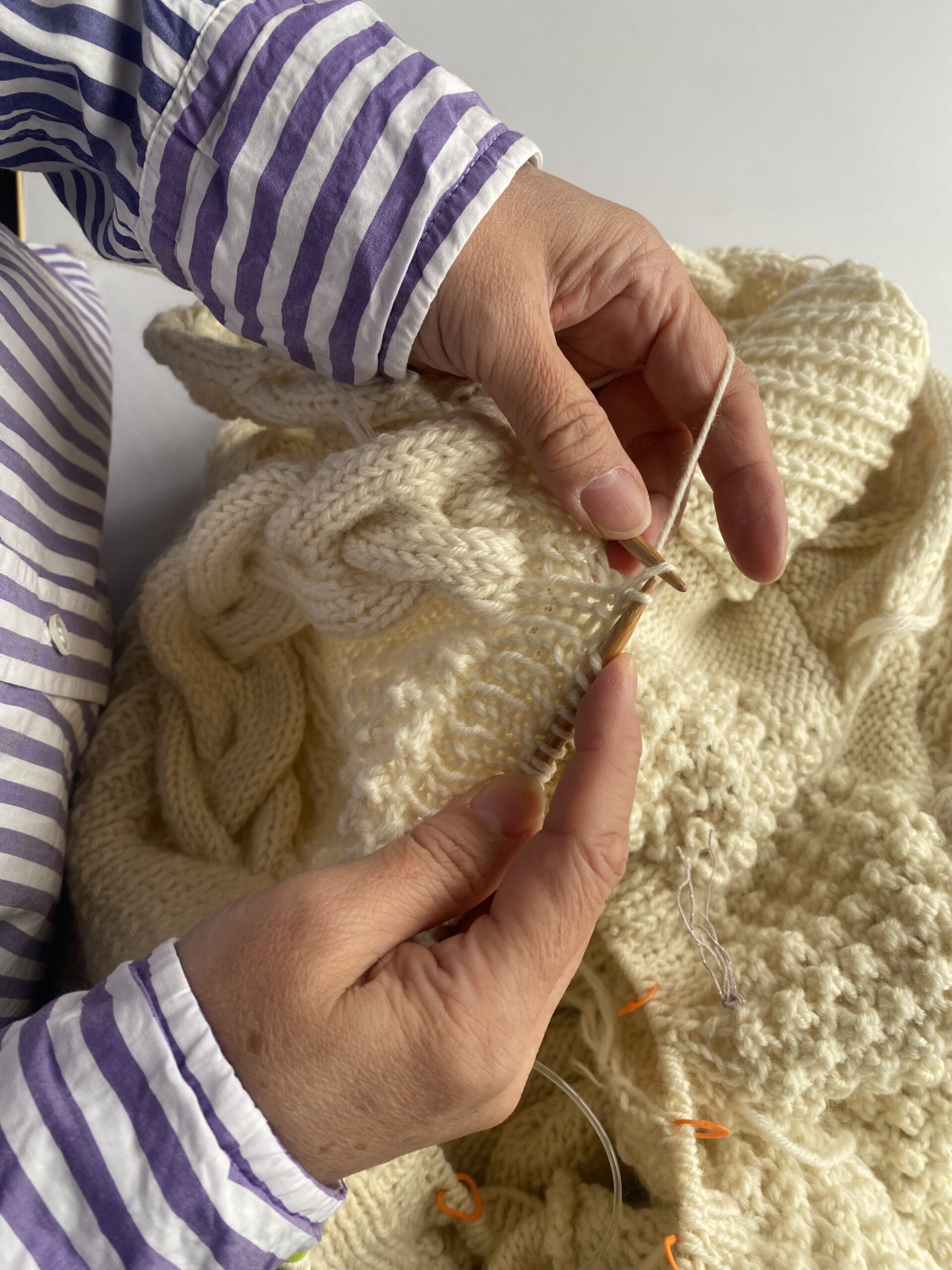 デザインのベースは、アイルランド・アラン諸島に伝わる伝統的なケーブル編み。