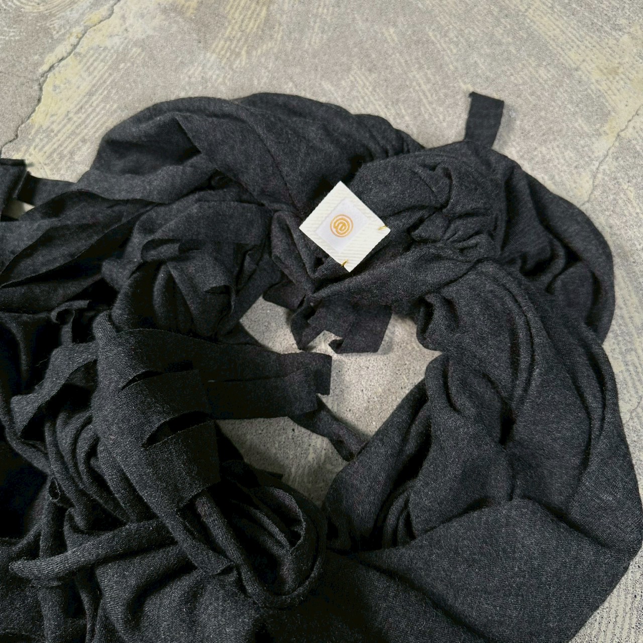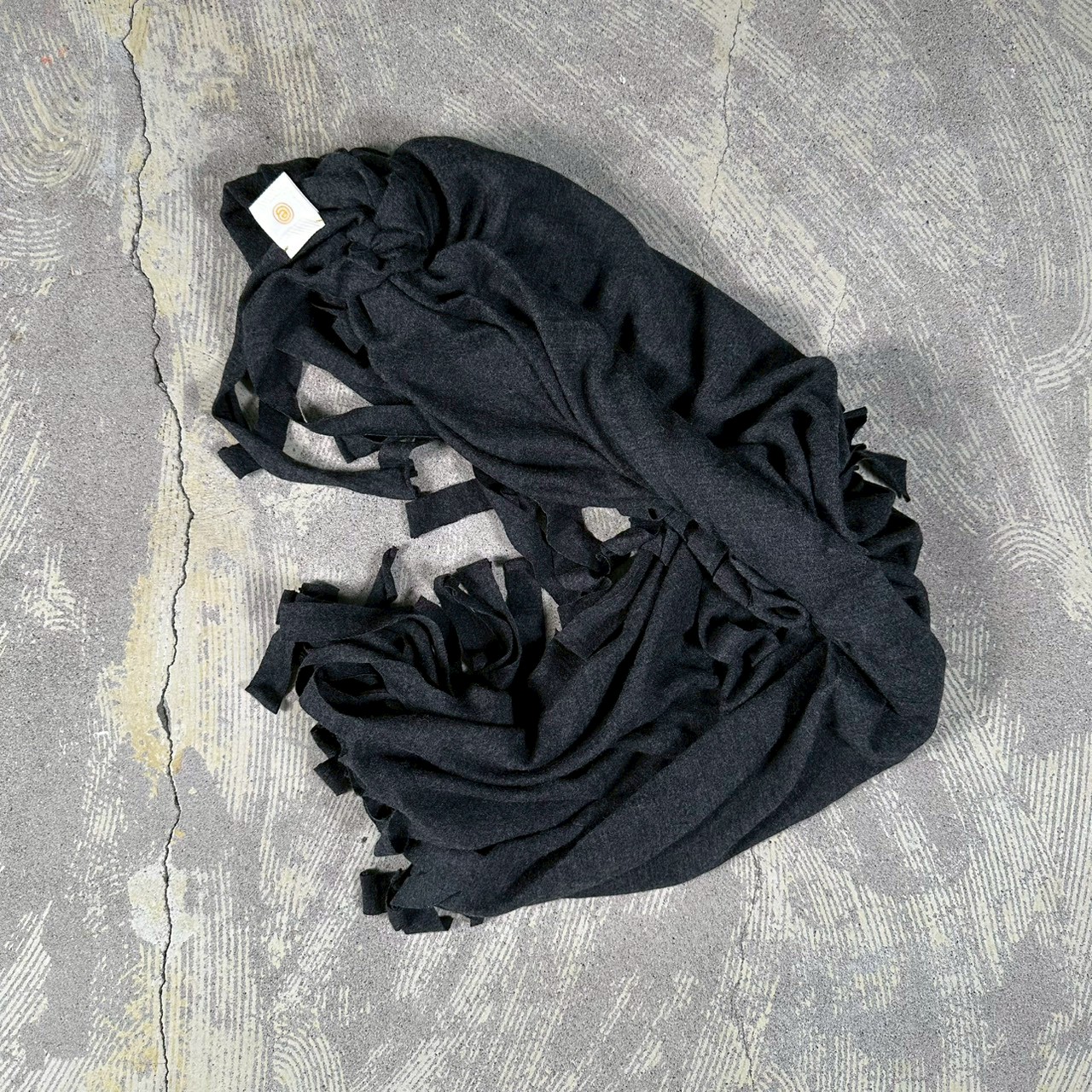 Each snood is carefully hand-stitched from wool jersey fabric, making every piece one of a kind. With its pre-formed shape, it feels just like wrapping a cozy stole around yourself♡ This large snood has a strong presence on its own — a perfect statement accessory for winter. This version features slightly thicker fringes. Made from 100% washable wool jersey, it’s soft, non-itchy, and can be gently hand-washed. Wishing you warmth and comfort through the cold winter days!! Ships immediately. 【Size】Neck circumference: 85cm / Length: 73cm 【Material】100% Wool 【Color】Charcoal Grey
