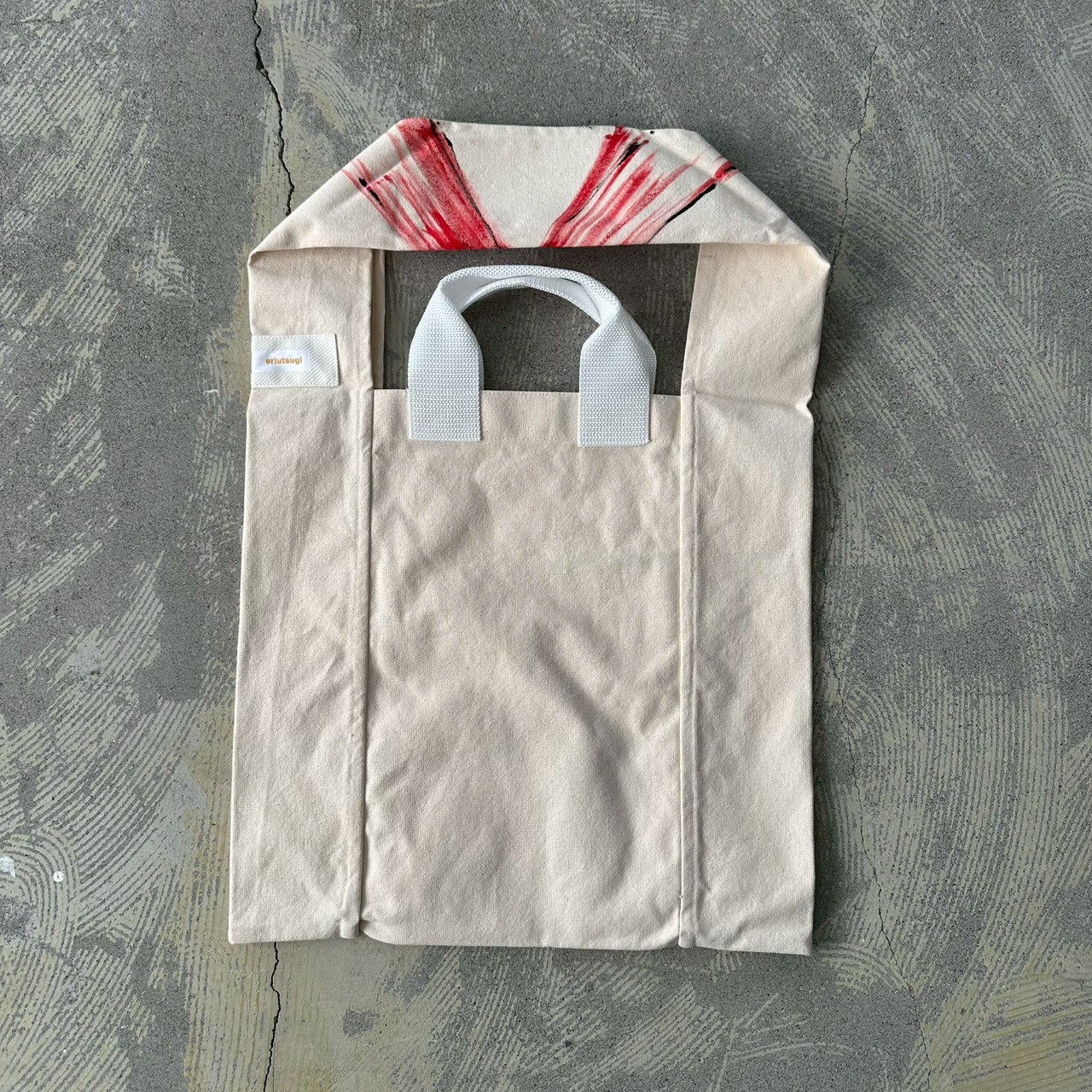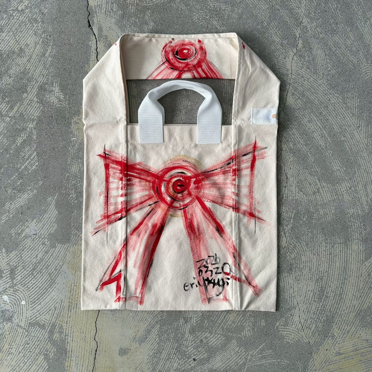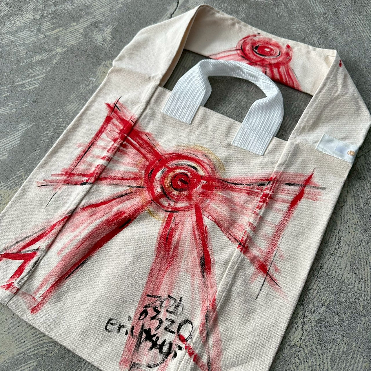 This year, I turn sixty — my Kanreki, the traditional milestone year of the Fire Horse. To mark this moment and with deep gratitude for everything that has brought me here, I painted this piece by hand as a small celebration for myself. A red ribbon to celebrate myself, with the e-spiral painted in the center. I created this hand-painted piece with the wish to always stay sweet and charming. This special bag was created to celebrate my sixtieth year. I hope this bag can also become a small celebration of a new step in your life. ♡ *Hand-painted with acrylic paint. 【Size】 Height 37cm Width 39cm Handle length 27cm Shoulder strap length 62cm 【Material】 Chita canvas 100% cotton 【Color】 Birthday Celebration Ribbon BAG ♡