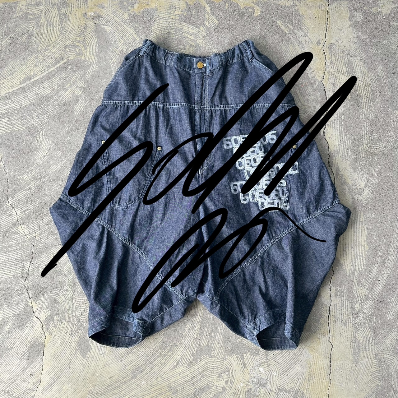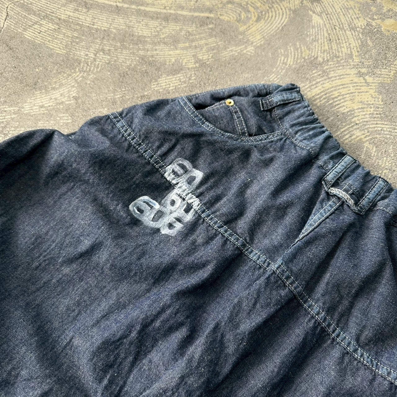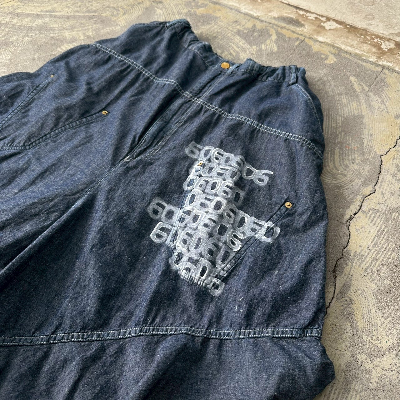 ダンガリー素材のパンツに、ハンドペイントしました。