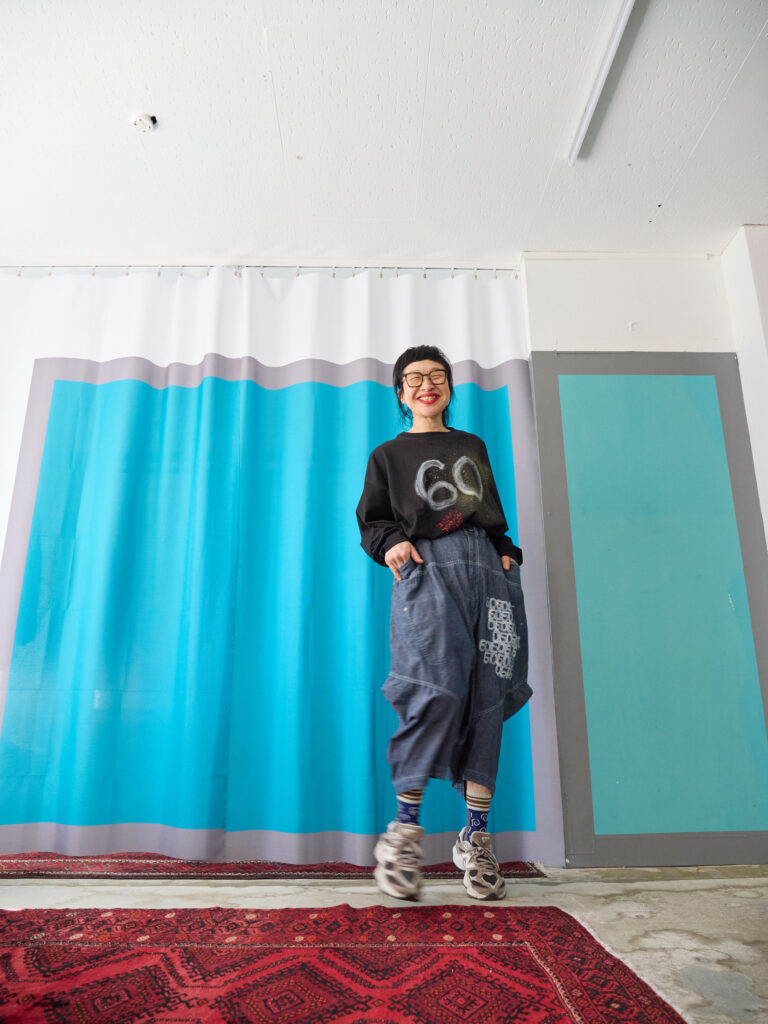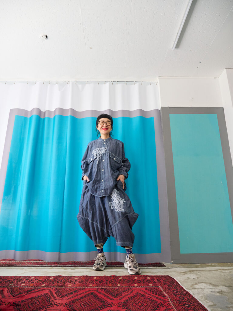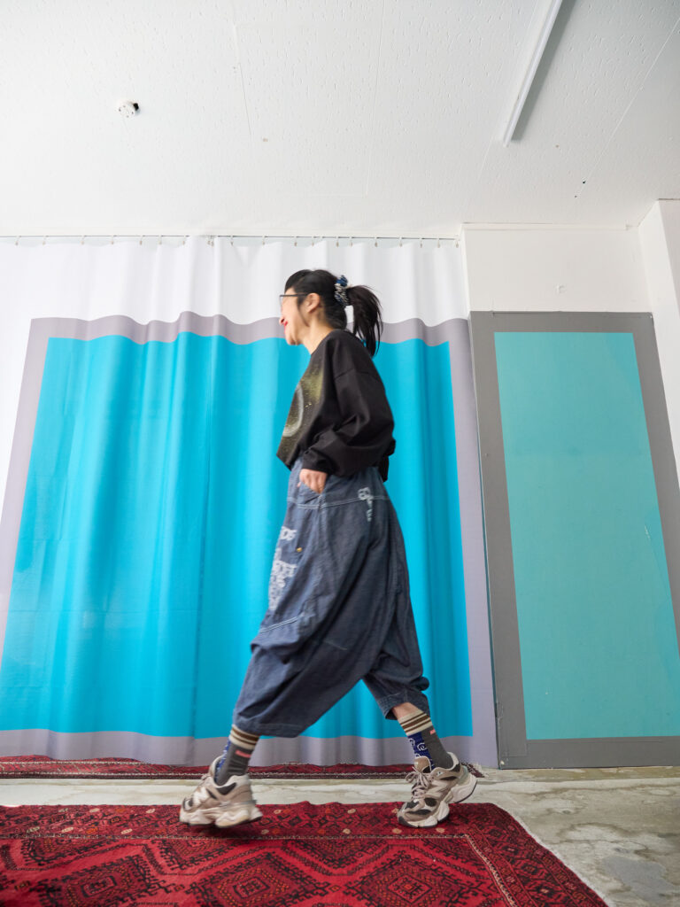 This year, I turn sixty — my Kanreki, the traditional milestone year of the Fire Horse. To mark this moment and with deep gratitude for everything that has brought me here, I painted this piece by hand as a small celebration for myself. I hand-painted this piece on dungaree pants. On a navy base, I painted the number “60” graphically in white. The design is a graphic hand-painting made by lining up the number “60.” Interestingly, about twenty years ago I printed the number “40” on bags and gave them as gifts. The base is the same shape as the Dungaree Cropped Pants we previously released. With a relaxed silhouette, they have the balanced shape that feels very eriutsugi. They pair beautifully with the shirt made from the same fabric like a suit, but they also look great worn on their own. A perfect piece for a special moment. ♡ *Hand-painted with acrylic paint. Washed once before delivery. 【Size】 Front pants length 75cm Back pants length 84cm Hip 134cm Rise 66cm Inseam 29cm Hem circumference 44cm Waist 62cm–88cm 【Material】 80% Cotton 20% Linen 【Color】 Navy