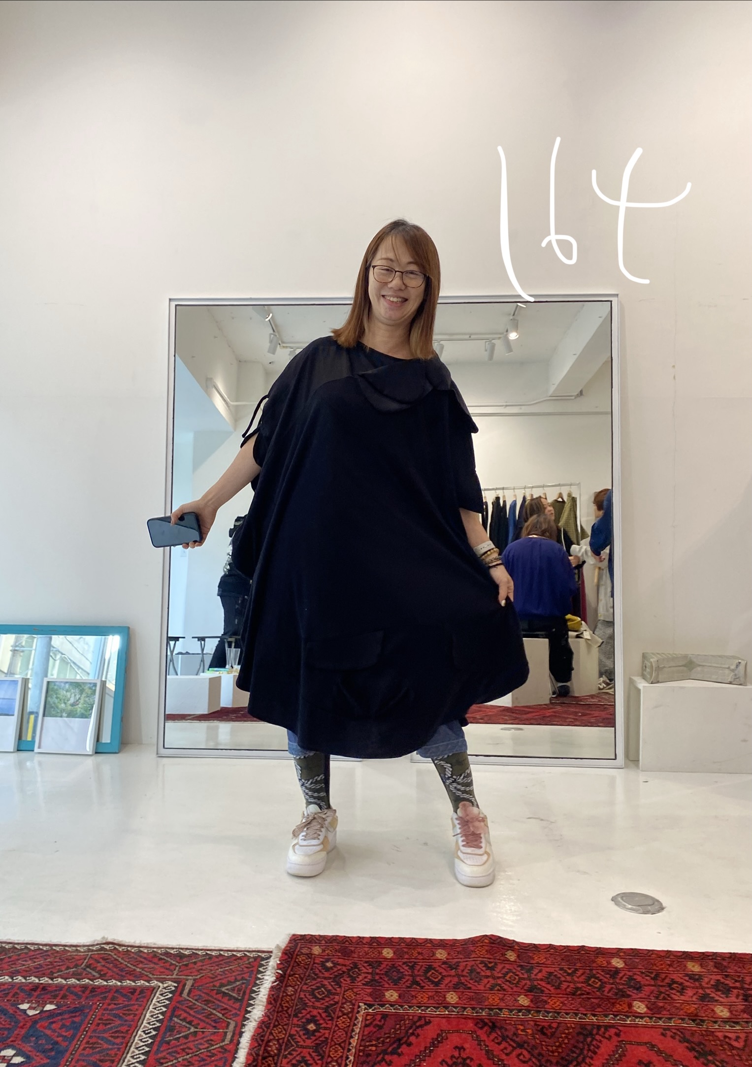 The “Manma Papa Dress” is a direct expression of Papa himself. While Papa’s face is boldly placed across the entire front, the dress is unified in black tones, creating a piece where playfulness and chic elegance coexist. The hachimaki detail is made from glossy rayon-cotton satin, while the base is crafted from a comfortable 100% cotton jersey fabric. Wearing Papa. When you’re wearing Papa, it somehow feels like everything can be forgiven. This is fine just the way it is. Size: F size with a length of 110cm, body width 180cm, hem circumference 176cm, sleeve length (from center back) 55cm, cuff width 23–26cm, and neckline width 25cm. Material: 100% cotton; contrast fabric 60% rayon, 40% cotton. Color: black. Limited-time sale from December 20 (Sat) at 8:00 PM until January 1 (Thu) at 8:00 PM. Delivery is scheduled for mid-April.