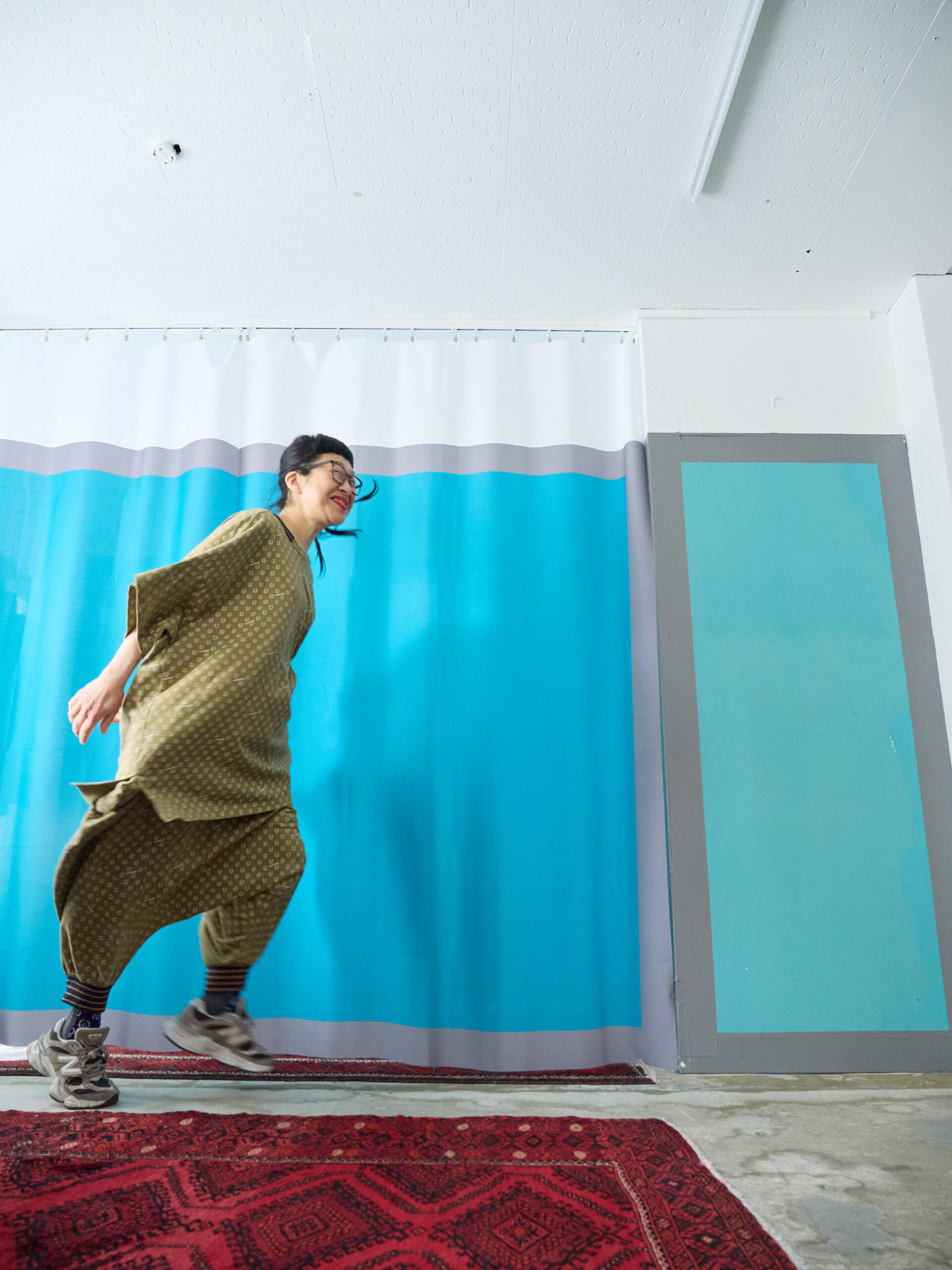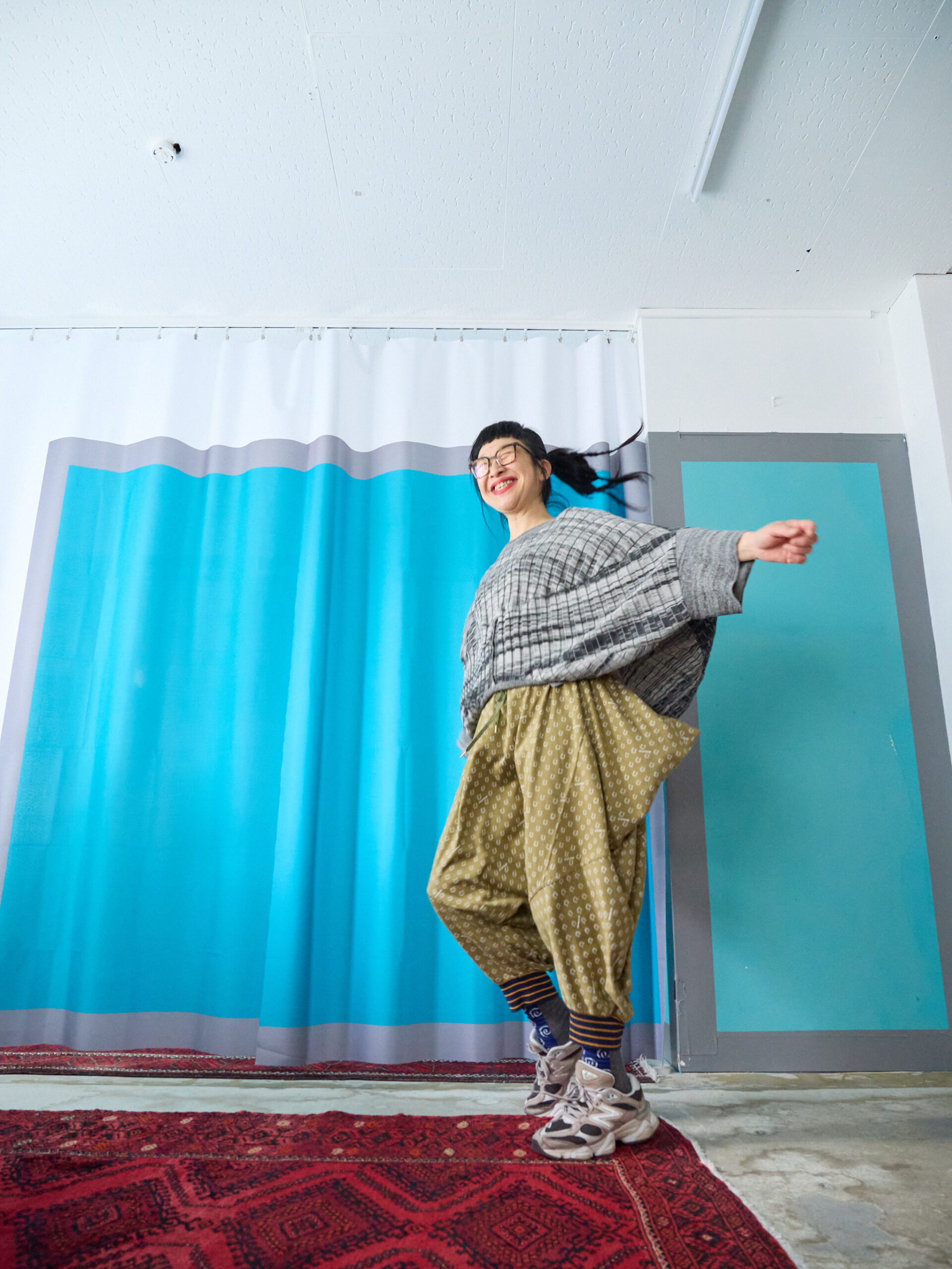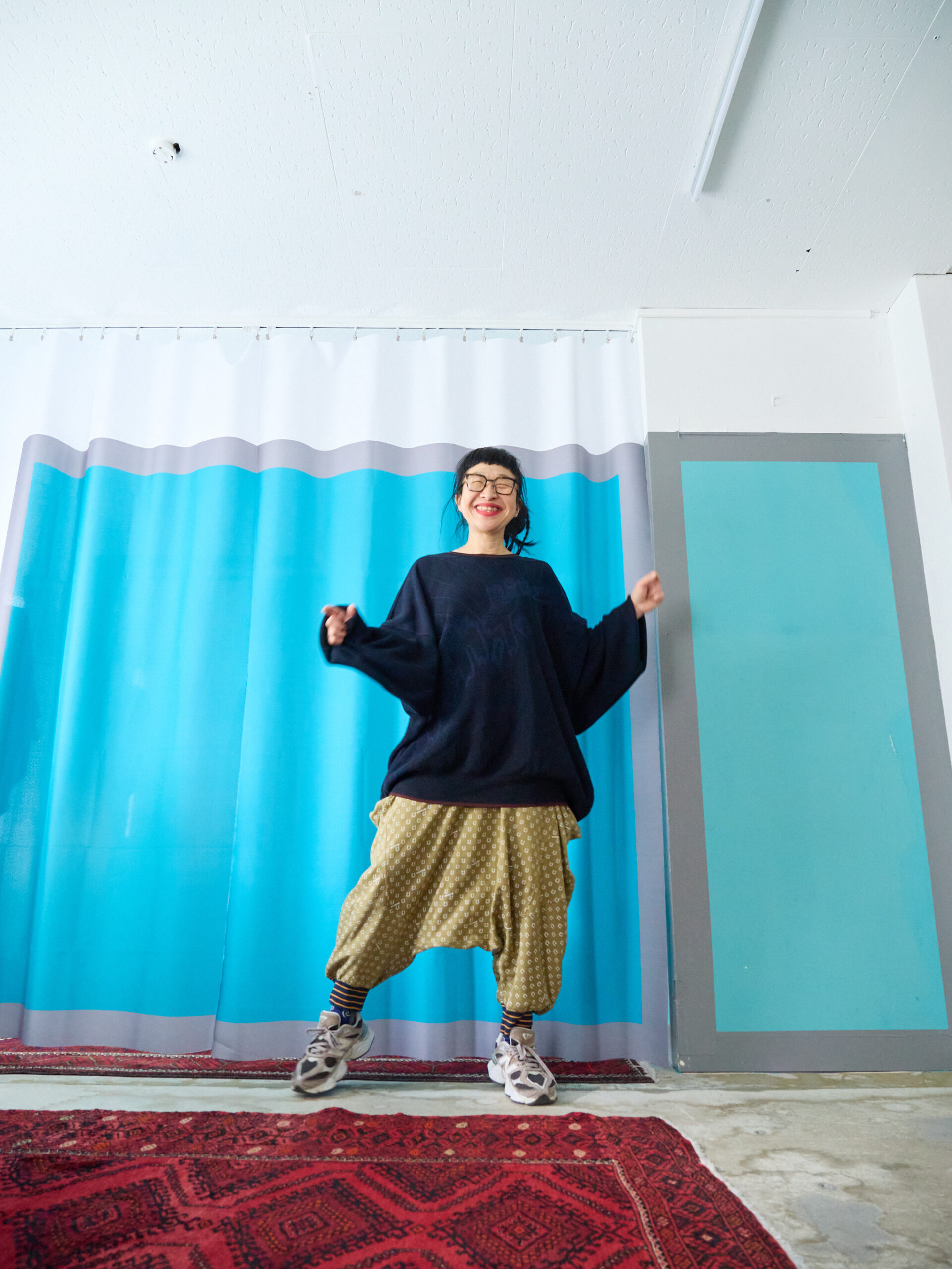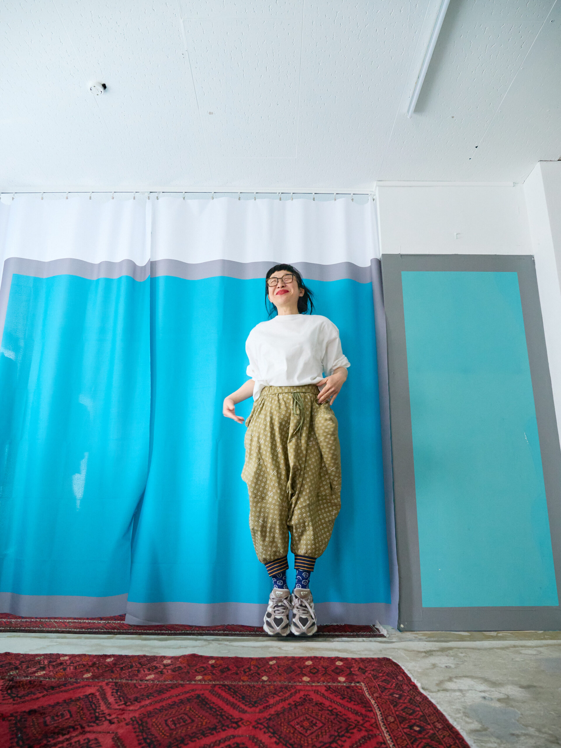 たくし上げて履けば、ブルマーのようなシルエットにもなり、股上がとても深いので、しゃがんだり立ったりも楽ちんです。