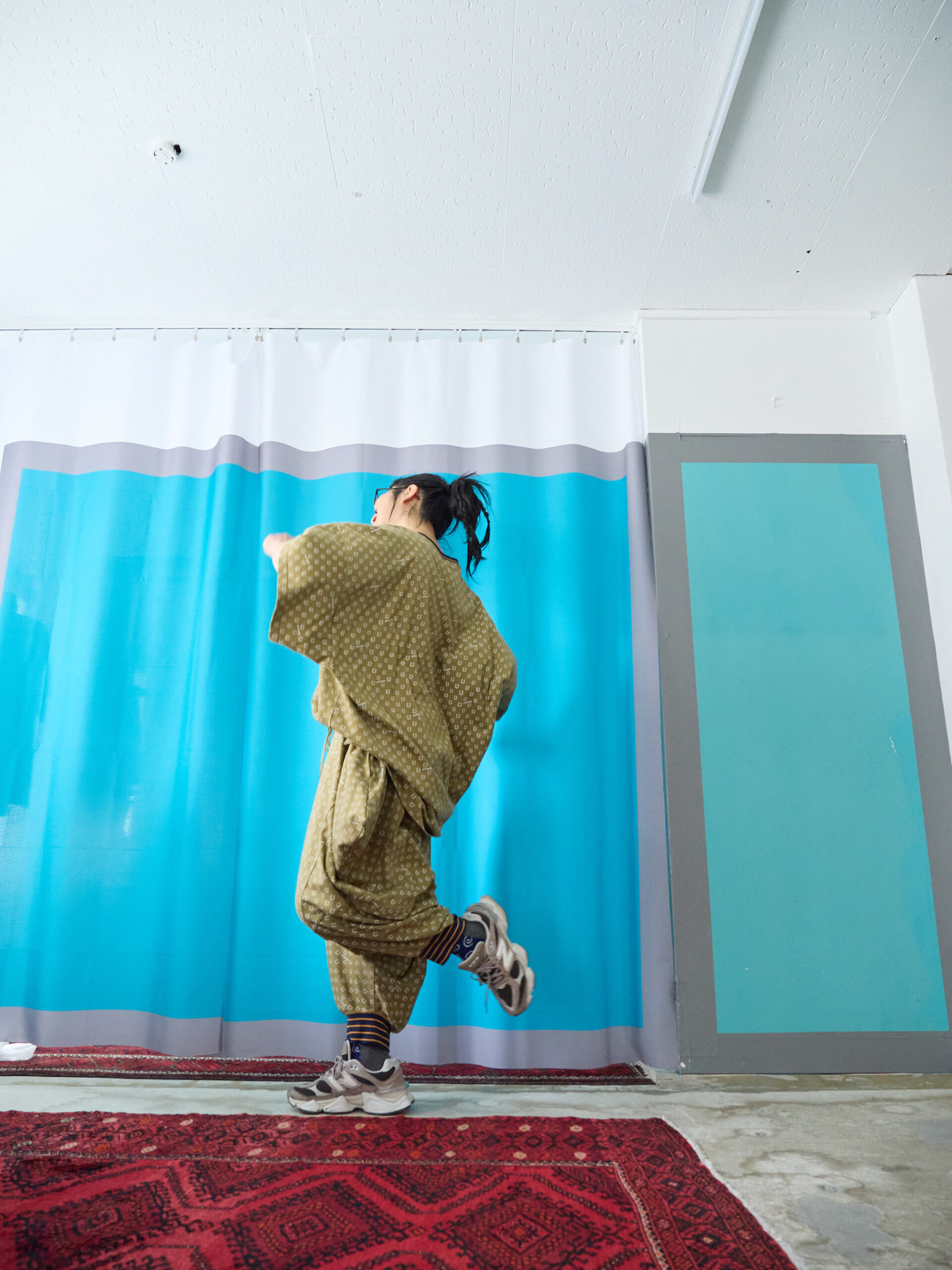 少し和風テイストでもあり、ラインリブのアクセントでスポーティーに仕上げています。