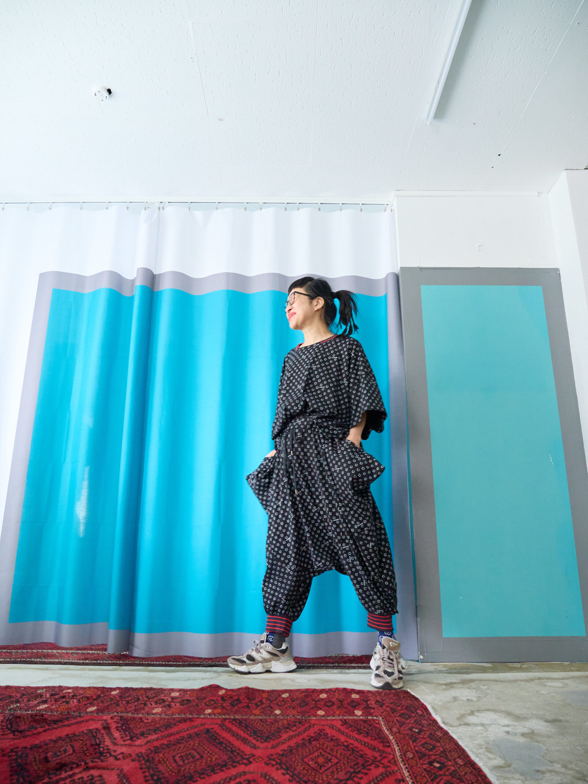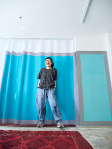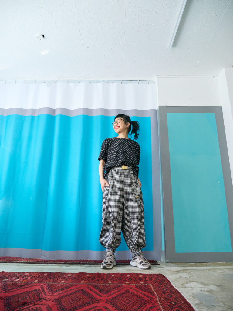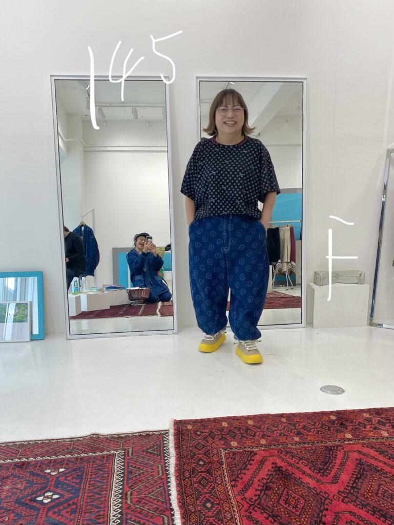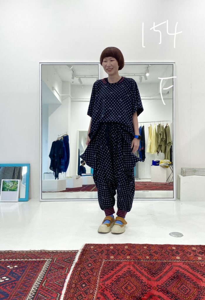 ボトムに同素材のハニカムサルエルパンツを合わせて、セットアップのように着るのもとてもおすすめです。