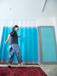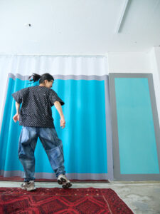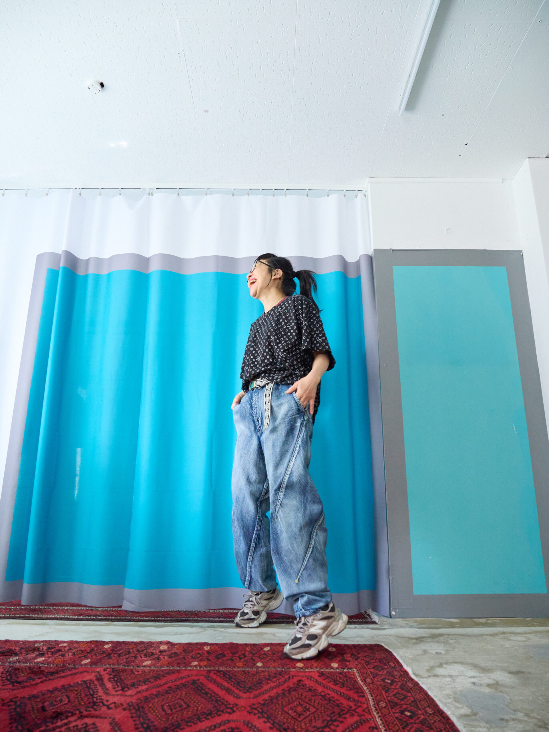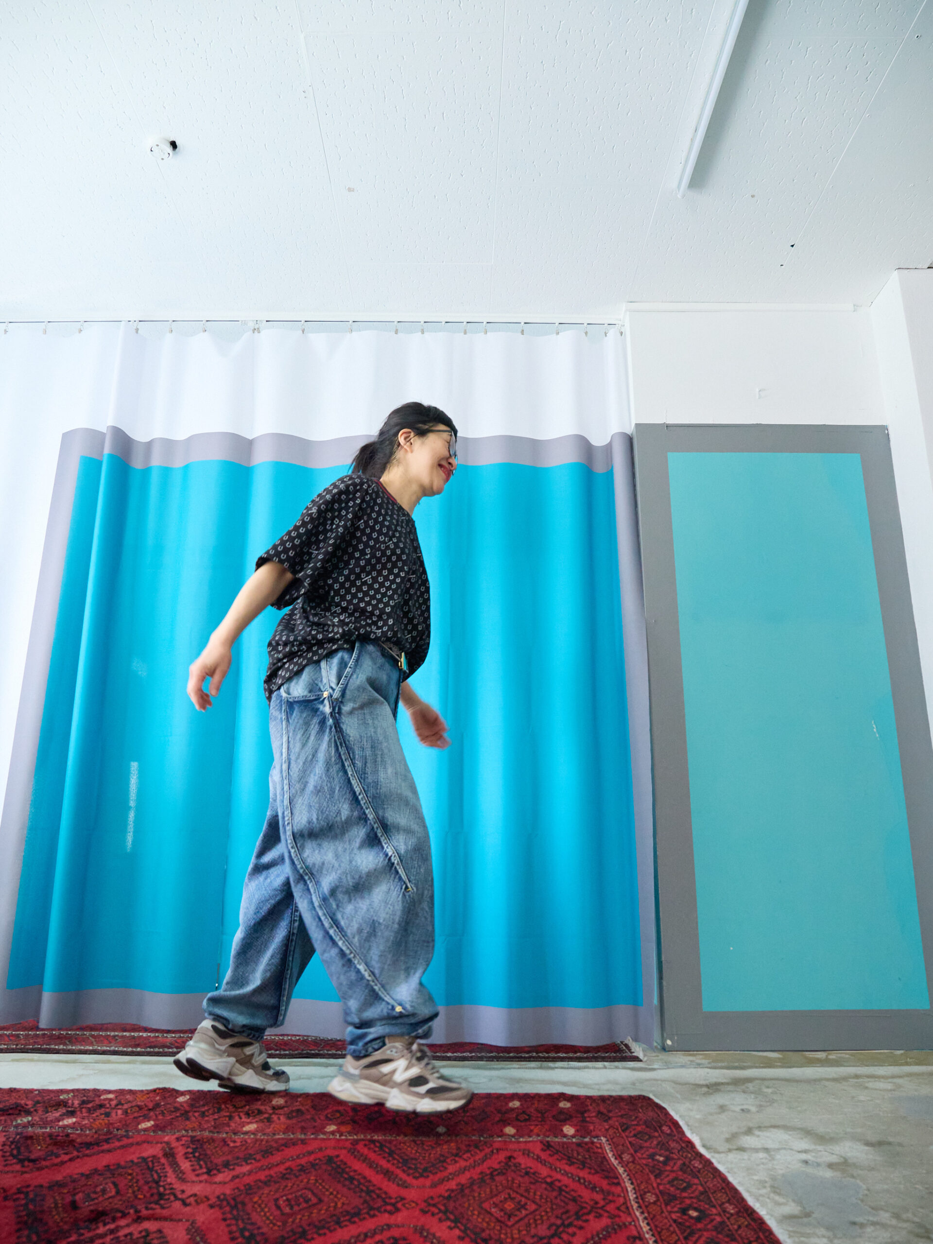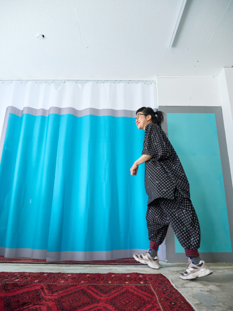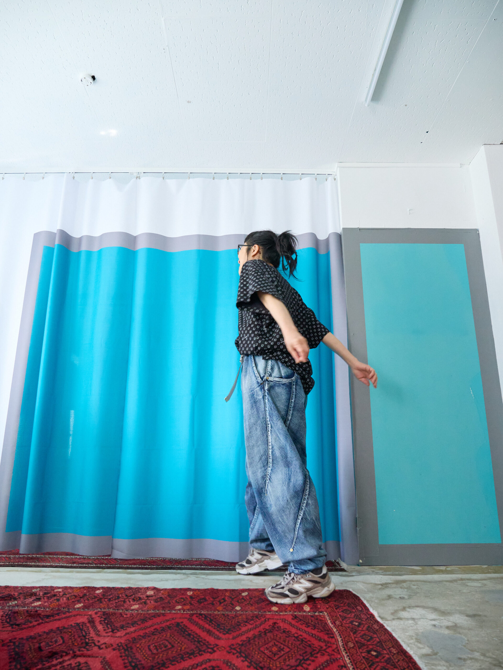 ボトムに同素材のハニカムサルエルパンツを合わせて、セットアップのように着るのもとてもおすすめです。