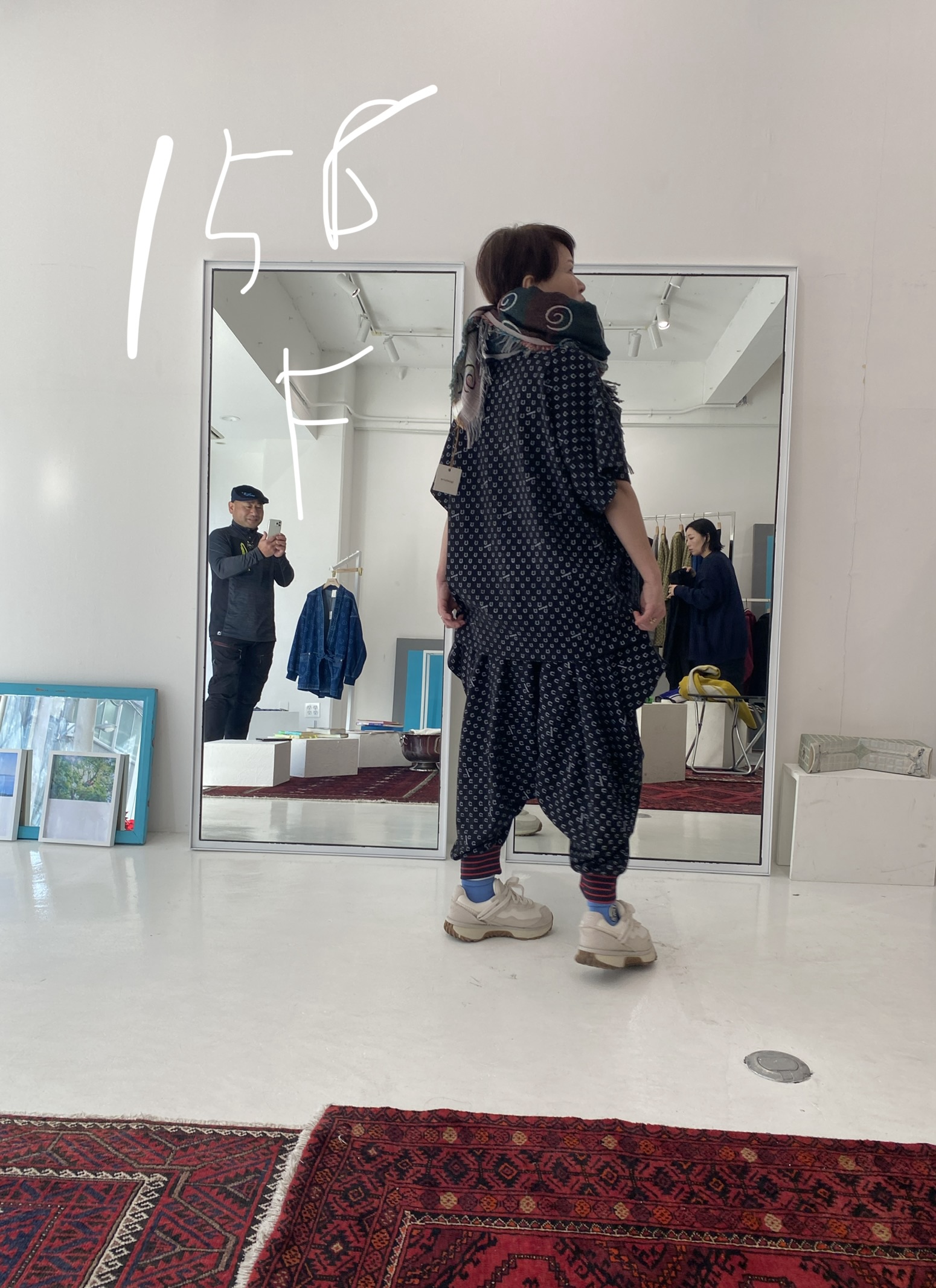 前着丈80cm 後ろ着丈83cm 身巾148cm 裾周り150cm 裄丈51cm 袖口巾62cm 天巾15cm スリット丈12cm