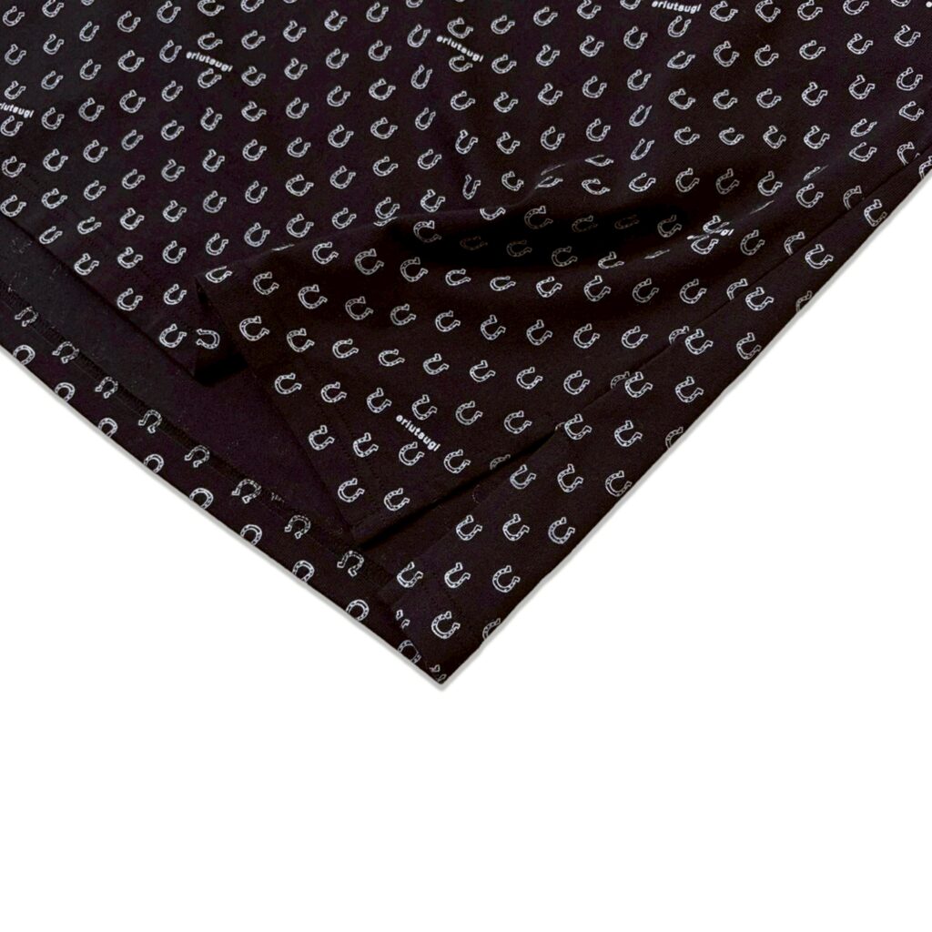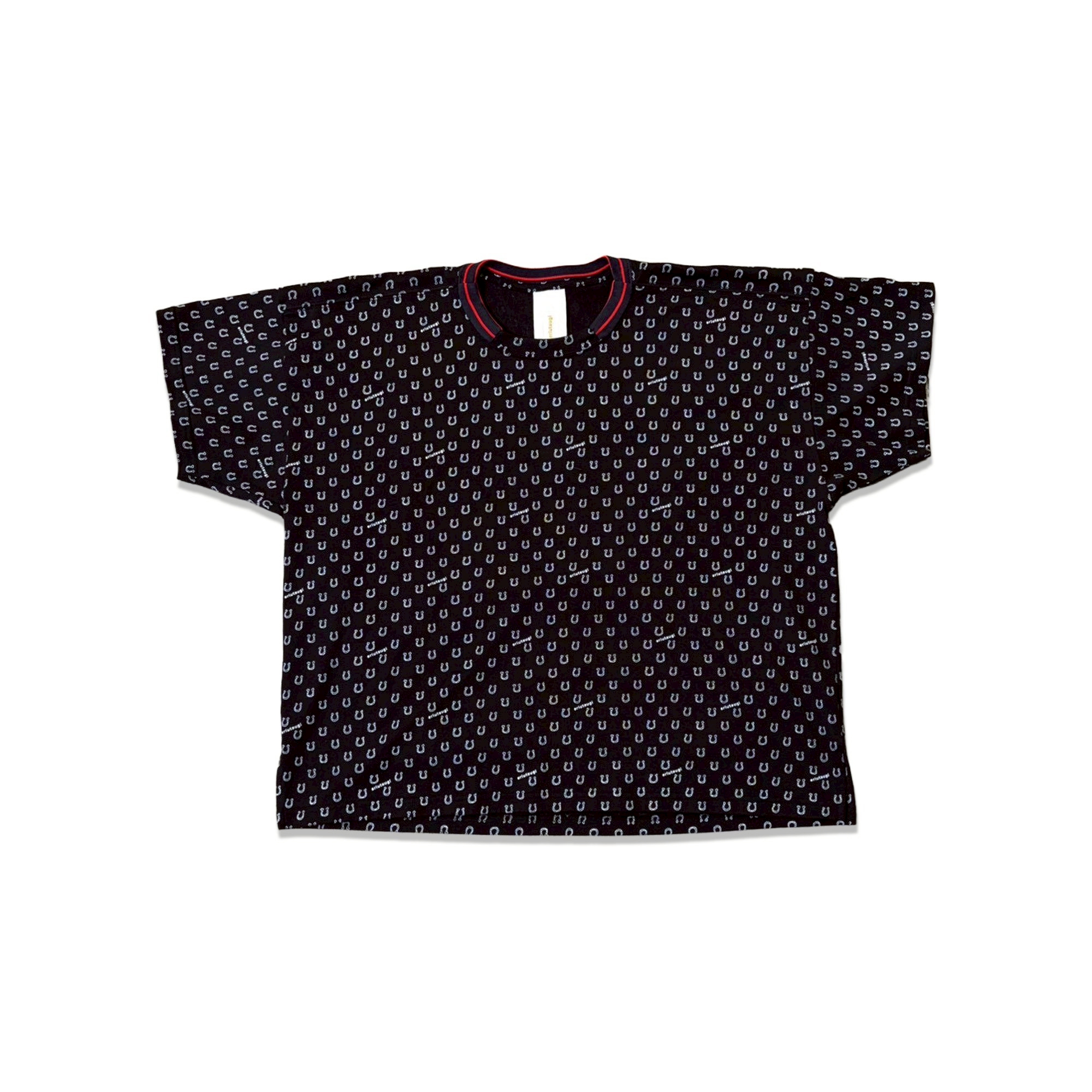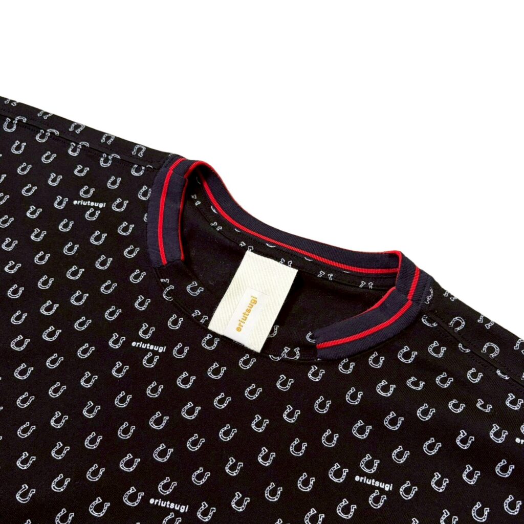 ホースシュー柄をドットのようにデザインした総柄のカットソー素材で作った、日常に少し特別をくれるTシャツです。
