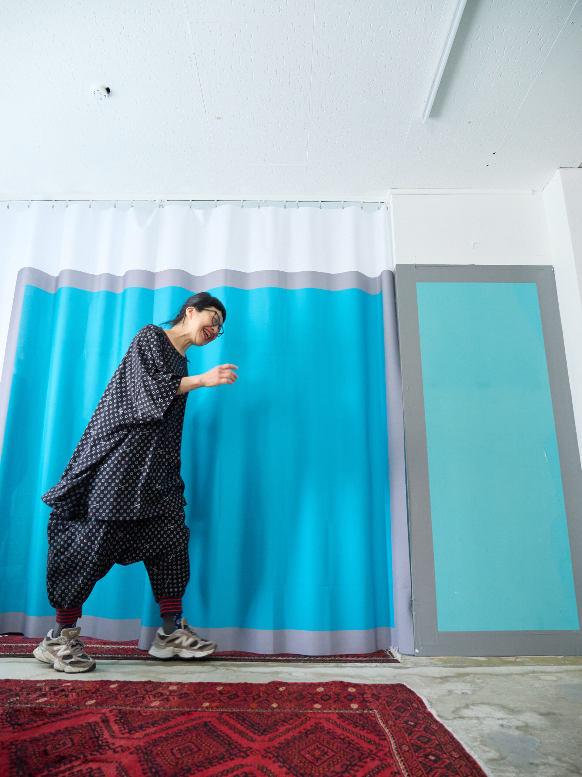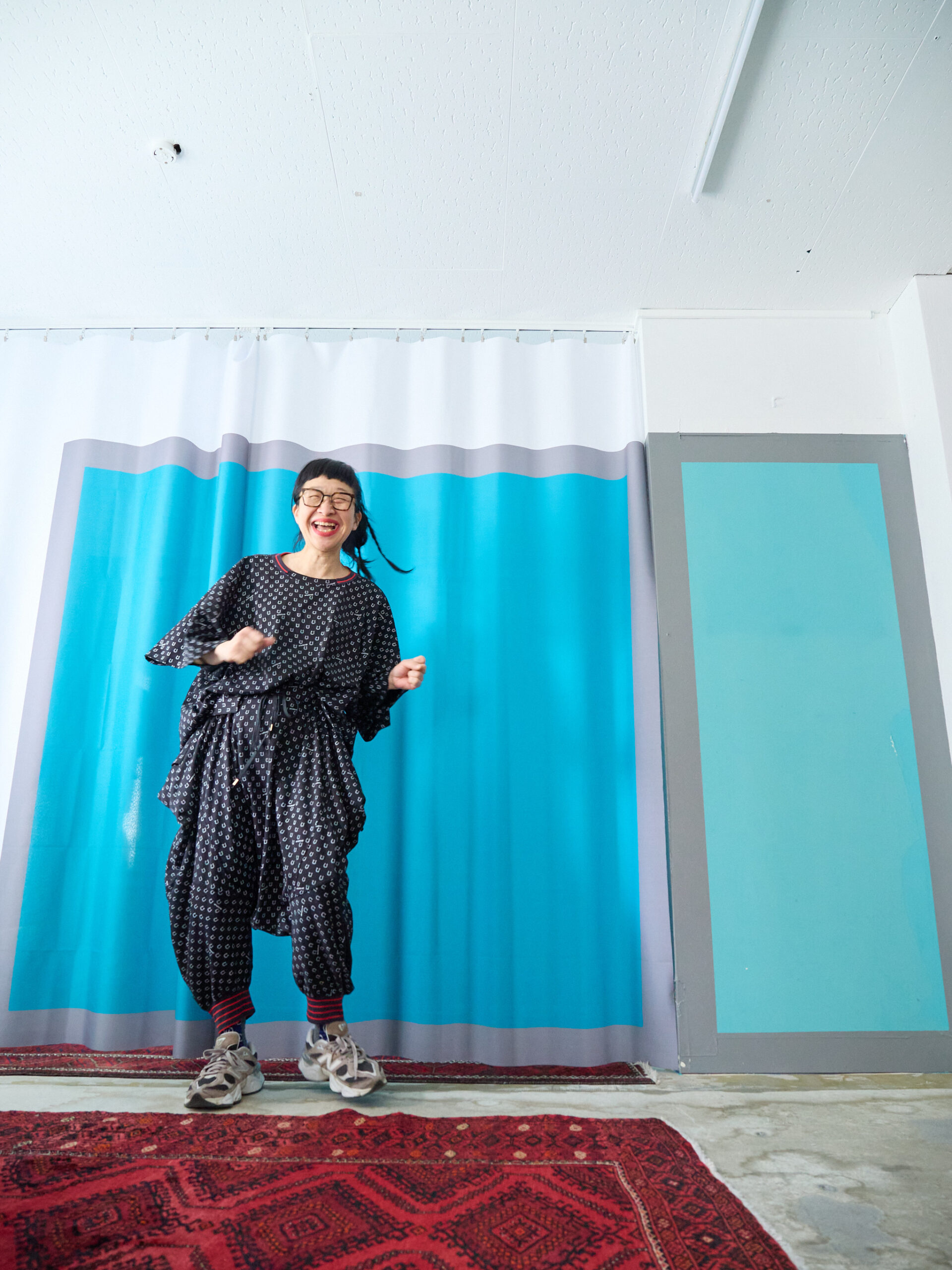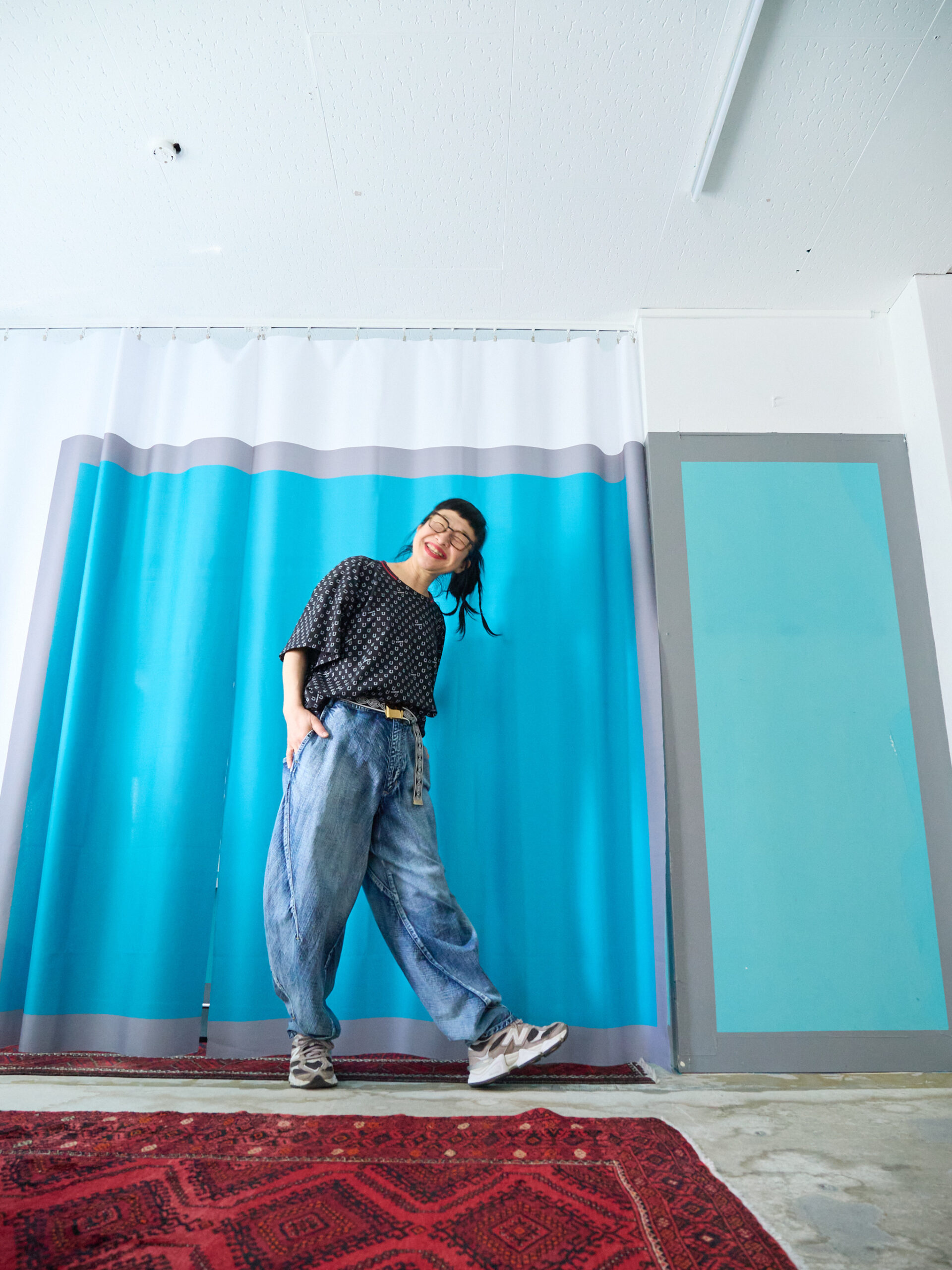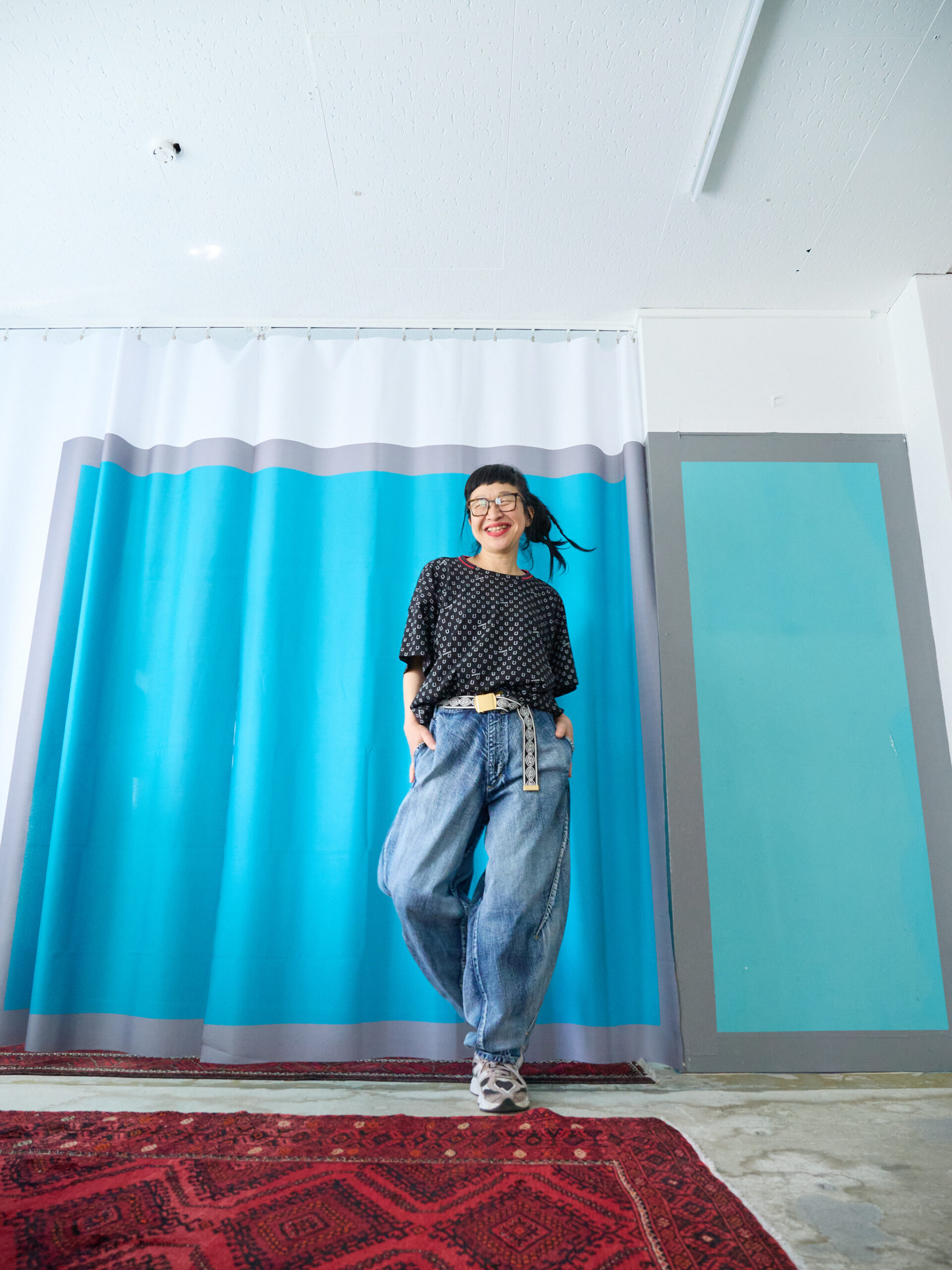こちらはブラック。合わせやすいカラーは、セージグリーンと同じですが、それに加え、レッドやピンクも素敵です。ブラックはもちろん、白やデニム、グレー、レモンイエロー、オレンジ。そして柄同士ですが、白黒のギンガムチェックとも相性抜群です。