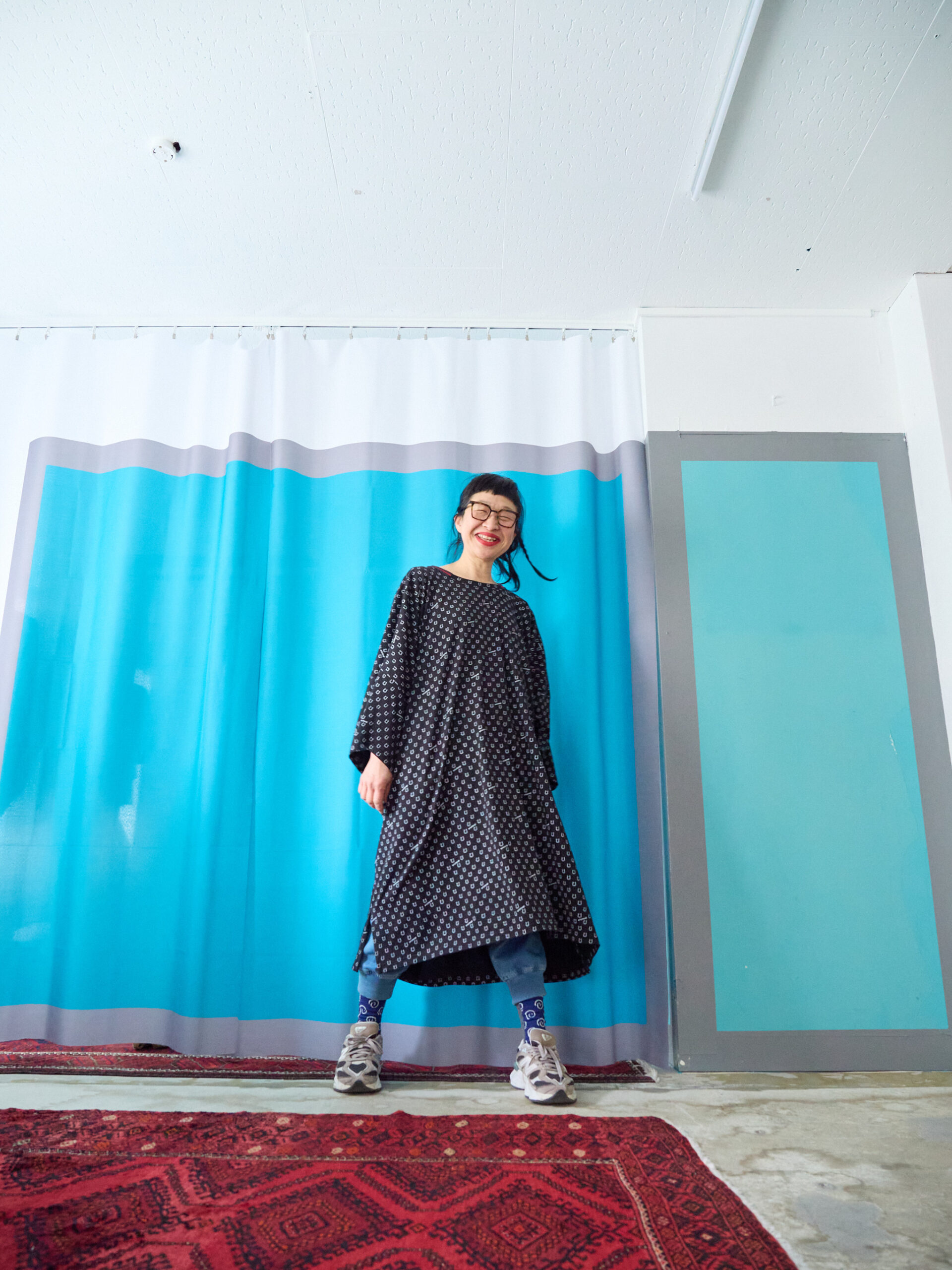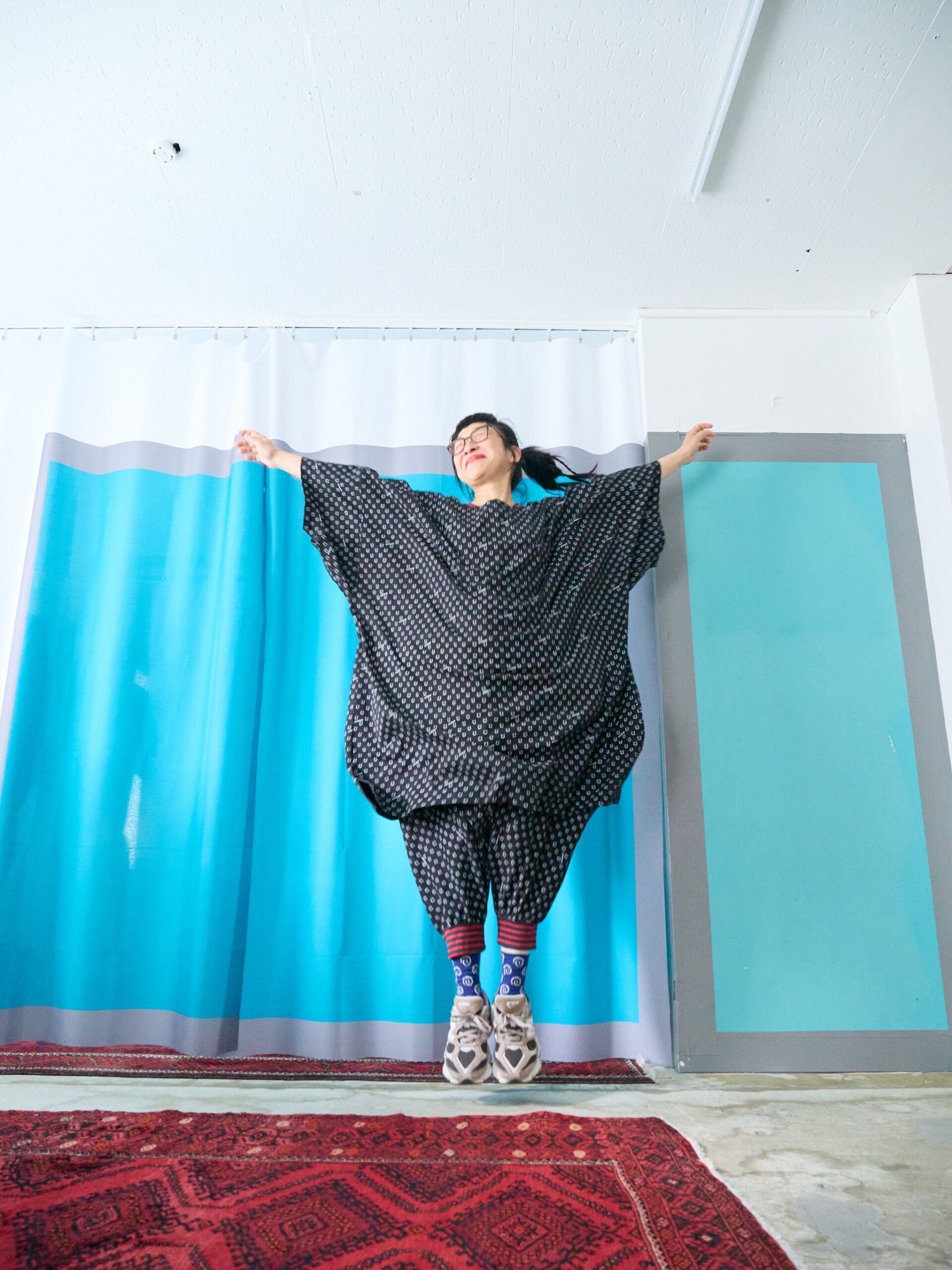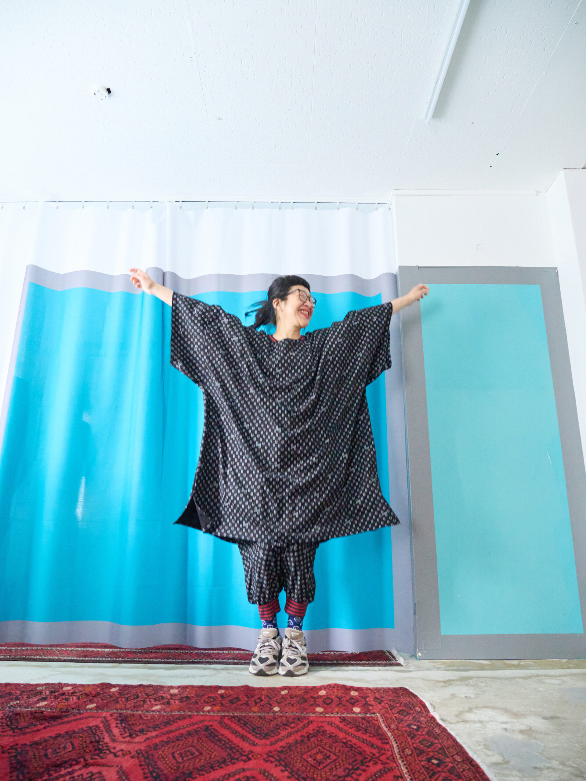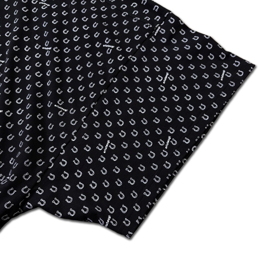 This BIG Tee is made from cut-and-sew fabric featuring an all-over horseshoe pattern designed like dots, and can also be worn as a one-piece. It is the same size as the SSB of the Motteke!Droboo series. The dot pattern feels fresh, but instead of ordinary dots, we thought it would be fun to create an original dot pattern using horseshoe motifs—so we designed it this way. It also has a subtle Japanese touch, finished with sporty accents through the line rib detailing. This is the Black color. It pairs easily with the same colors as Sage Green, and in addition, red and pink also look great. Black, of course, as well as white, denim, grey, lemon yellow, and orange all work beautifully. Even with other patterns, it goes especially well with black-and-white gingham. The silhouette is wide, like an oversized T-shirt expanded as it is. Since it is not long and narrow, it gives a strong sense of style. We also highly recommend pairing it with the matching Honeycomb Sarouel Pants in the same fabric for a set-up look. Made from 100% cotton, it is easy to care for. It was designed so you can enjoy summer in a relaxed yet stylish way. Limited pre-order Delivery around mid-July 【Size】Front length: 102 cm Back length: 107 cm Width: 184 cm Hem circumference: 186 cm Sleeve length (from center back): 64 cm Cuff width: 66 cm Neck width: 18 cm Slit length: 15 cm 【Material】100% Organic Cotton [Rib] Cotton 78% / Rayon 18% / Polyurethane 4% 【Color】Black