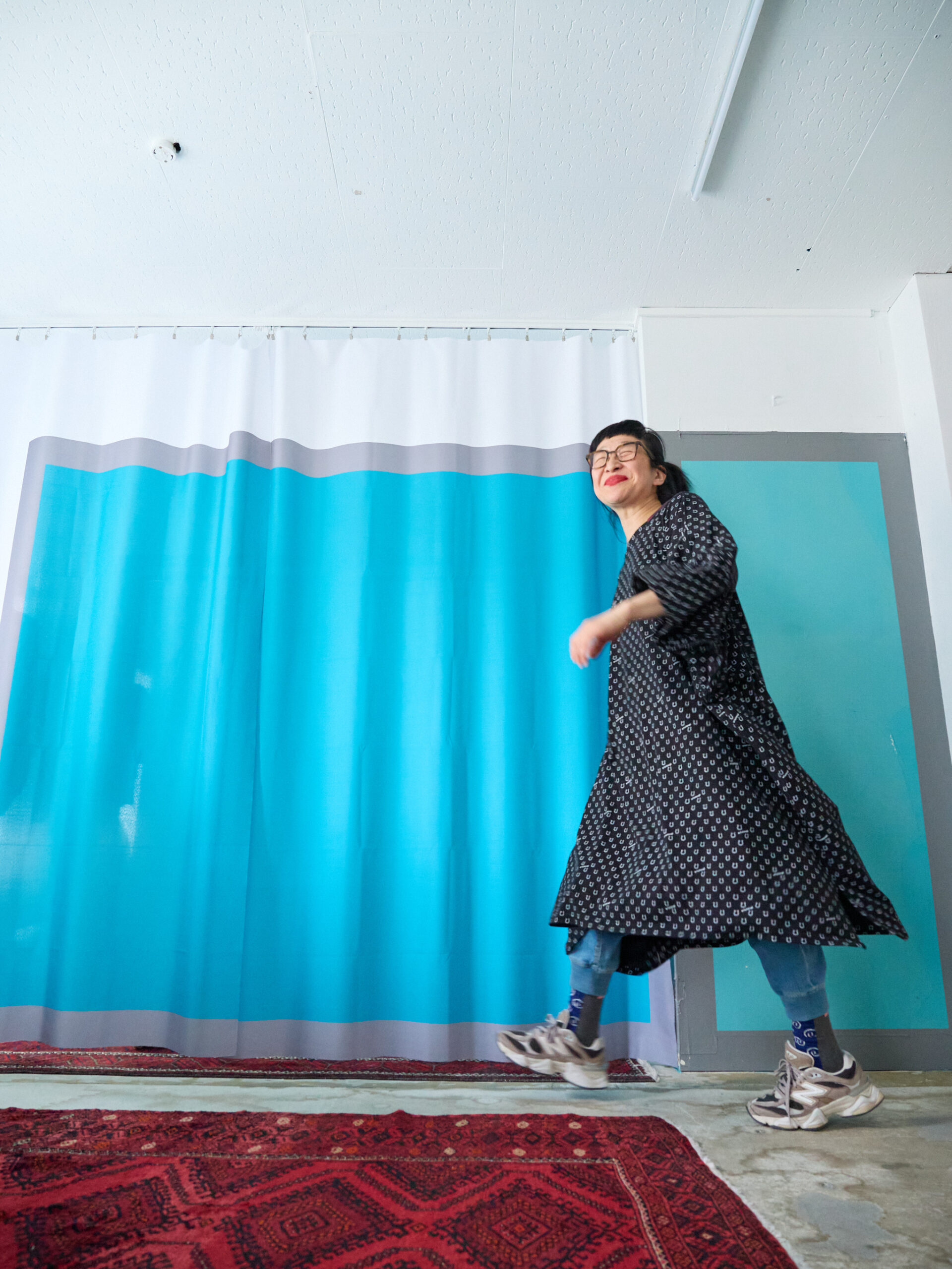 こちらはブラック。合わせやすいカラーは、セージグリーンと同じですが、それに加え、レッドやピンクも素敵です。ブラックはもちろん、白やデニム、グレー、レモンイエロー、オレンジ。そして柄同士ですが、白黒のギンガムチェックとも相性抜群です。