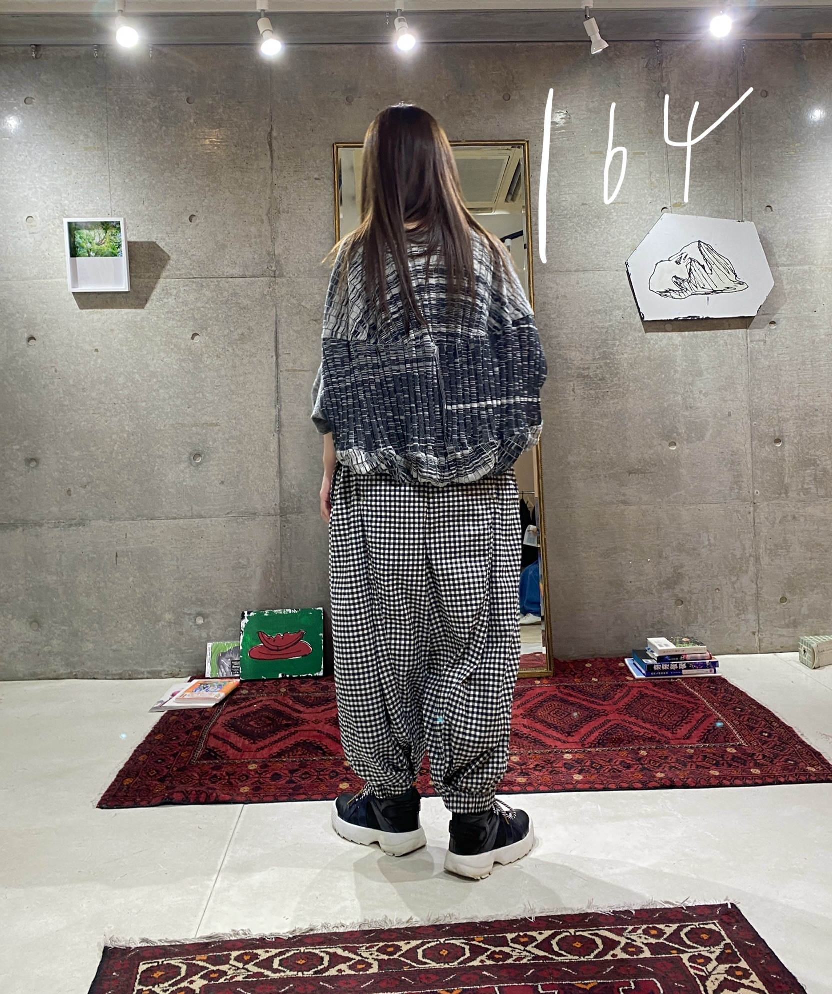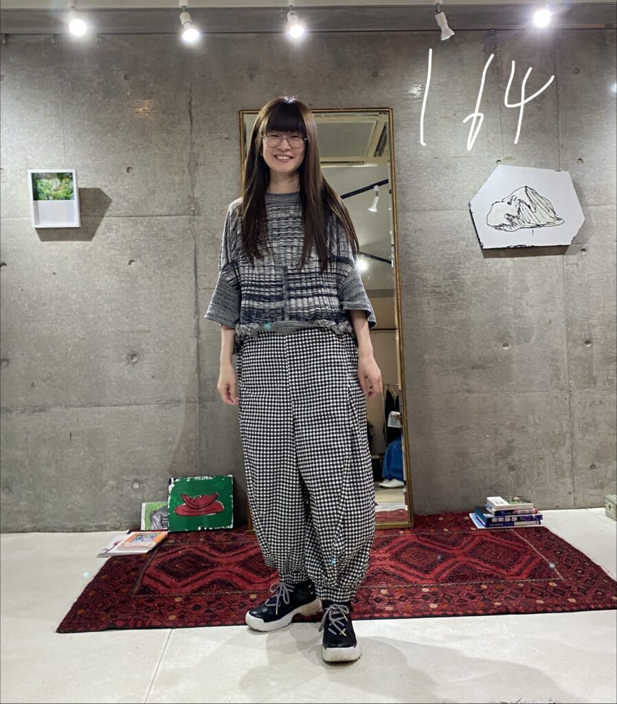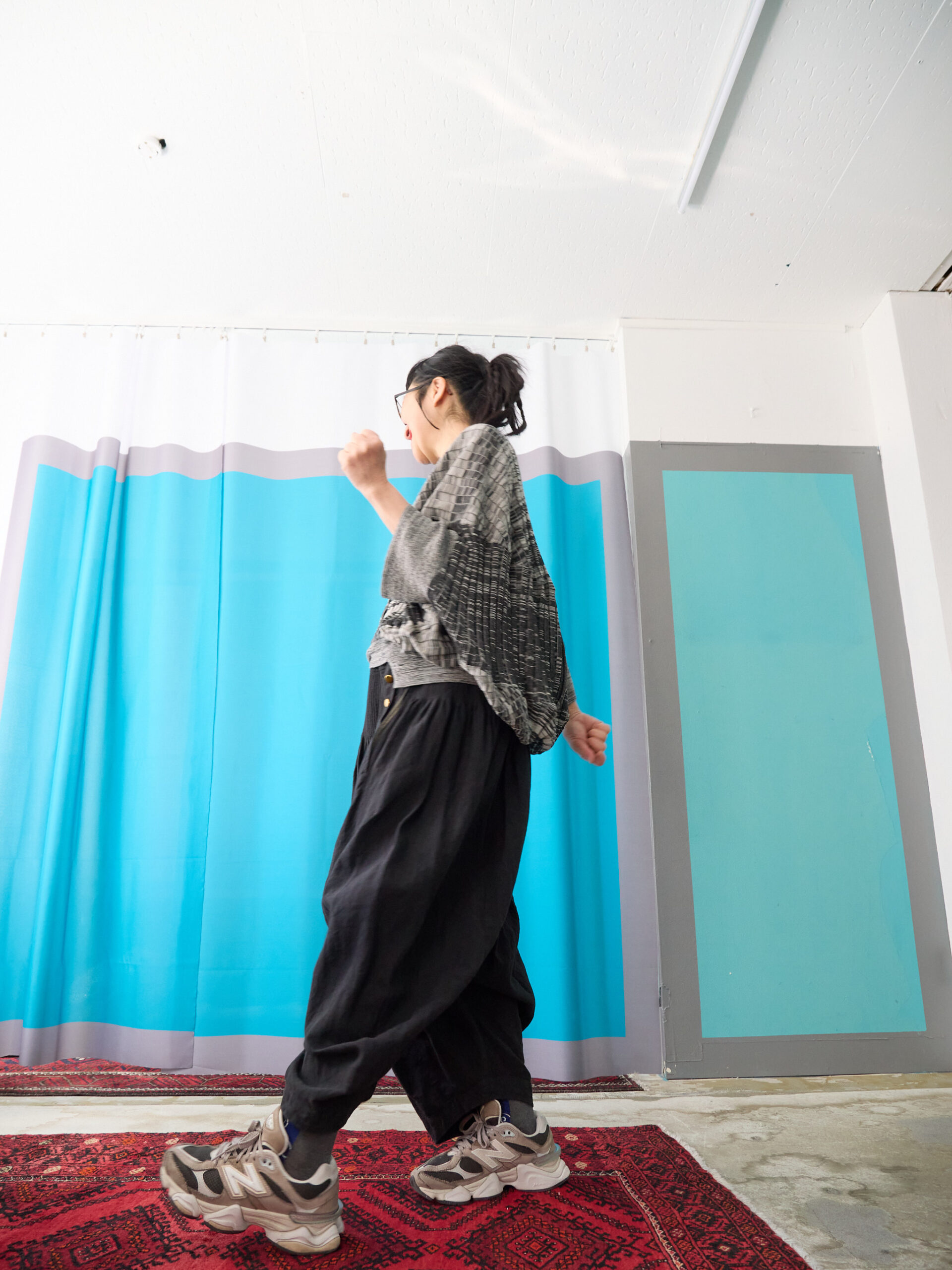 model 162cm Linen Cotton VEST black Linen Cotton Gather Pants black