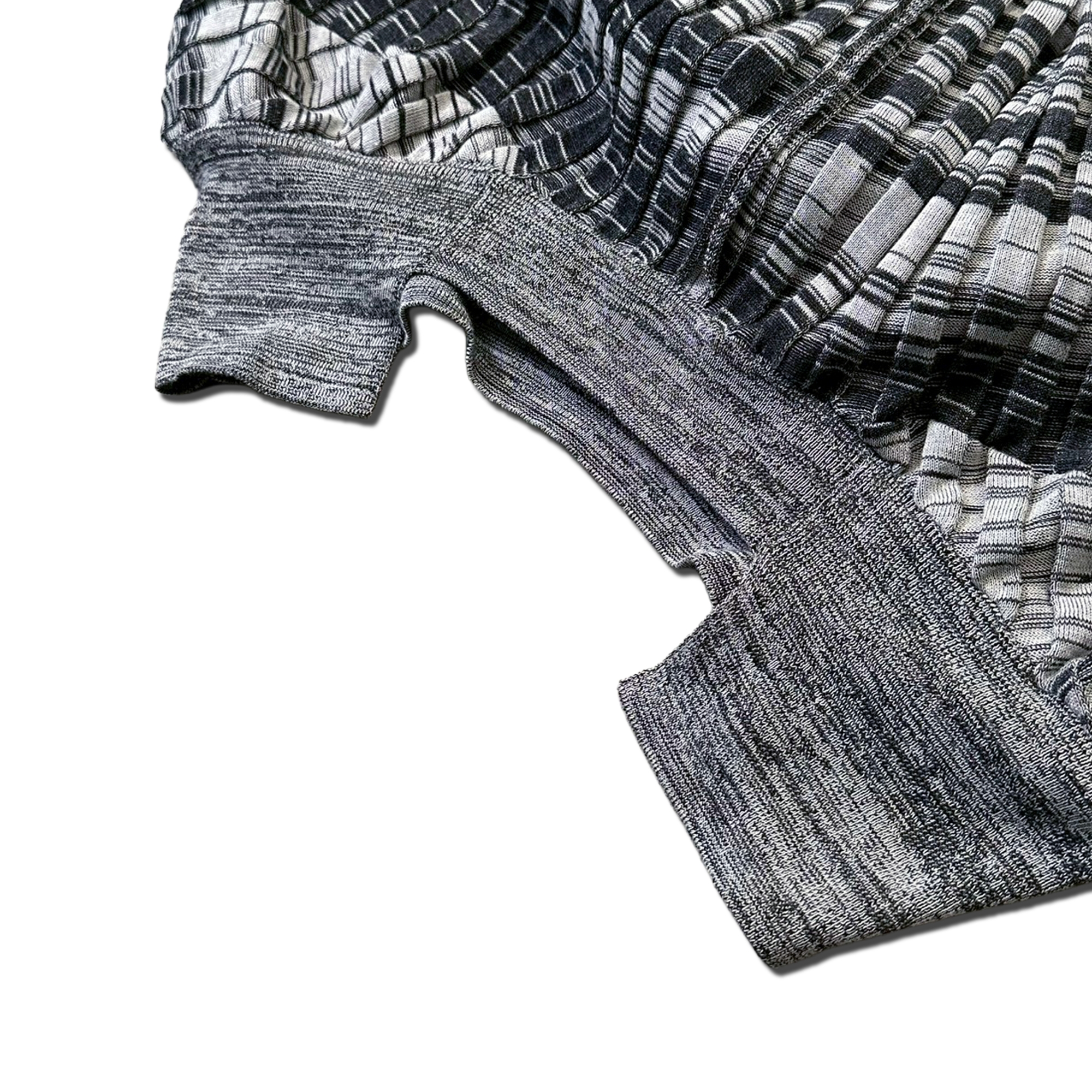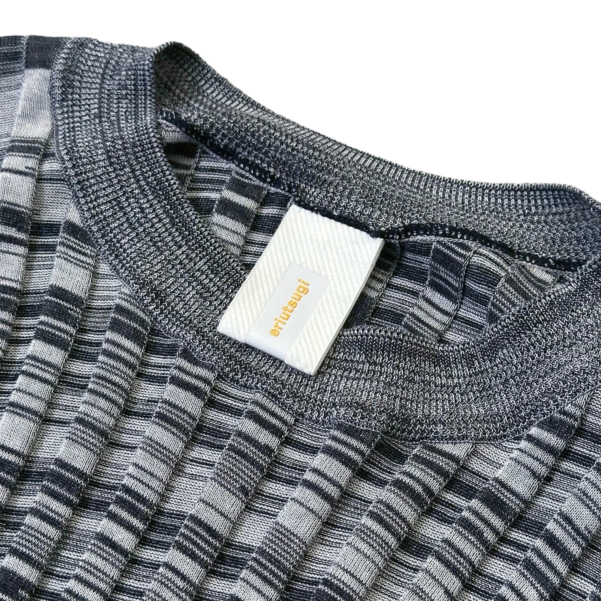 Inspired by the shape of a bell, the Bell Rib Top was designed with a soft sculptural silhouette. Easy to pair with both skirts and pants, it naturally fits a variety of body types and creates a clean, streamlined look the moment you put it on — a balance that feels distinctly eriutsugi. Previously introduced in cut-and-sew fabric, this silhouette is reimagined in knit. Crafted with structured, wide vertical ribs, it adds dimension without clinging to the body, creating gentle volume and shape. Special attention was given to the color development, blending different yarns to achieve an original heathered finish with depth and nuance. The Grey Heather shade carries softness with subtle depth. Never overpowering, yet it cleanly refines and pulls a look together. Easy to pair with almost anything, it becomes a reliable presence in your wardrobe. Made from 100% cotton, it is comfortable to wear year-round. The knit texture adds refinement and dimension, giving it a polished yet effortless feel. Pair it with denim or linen-cotton pieces for relaxed structure, or with cleaner items for a more composed impression. This spring and summer, it’s a top that brings a slightly distinctive touch to your look simply by having it in your wardrobe. We would be delighted if you chose it as one of your pieces for the season. Delivery: Around mid-June [Size] Front length 54cm Back length 73cm Body width 155cm Hem width 73cm Sleeve length (center back to cuff) 55cm Cuff width 36cm Neck width 13cm [Material] 100% Cotton [Color] Grey Heather