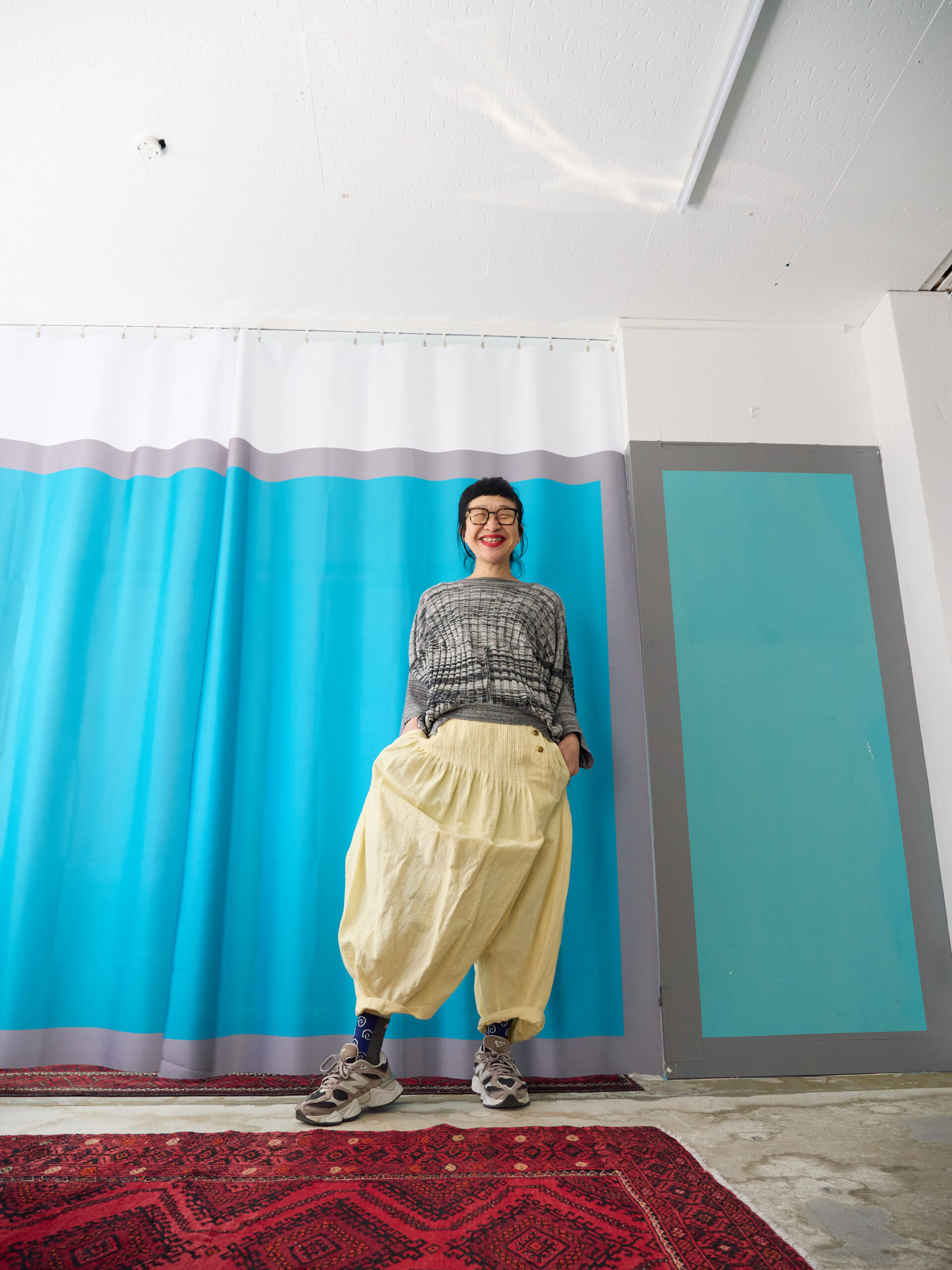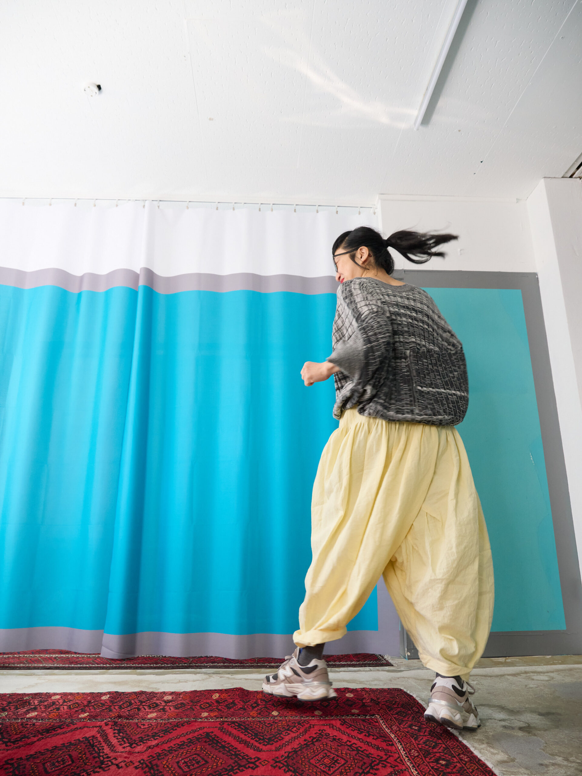 model 156cm Linen Cotton Gather Pants yellow BAKABON socks