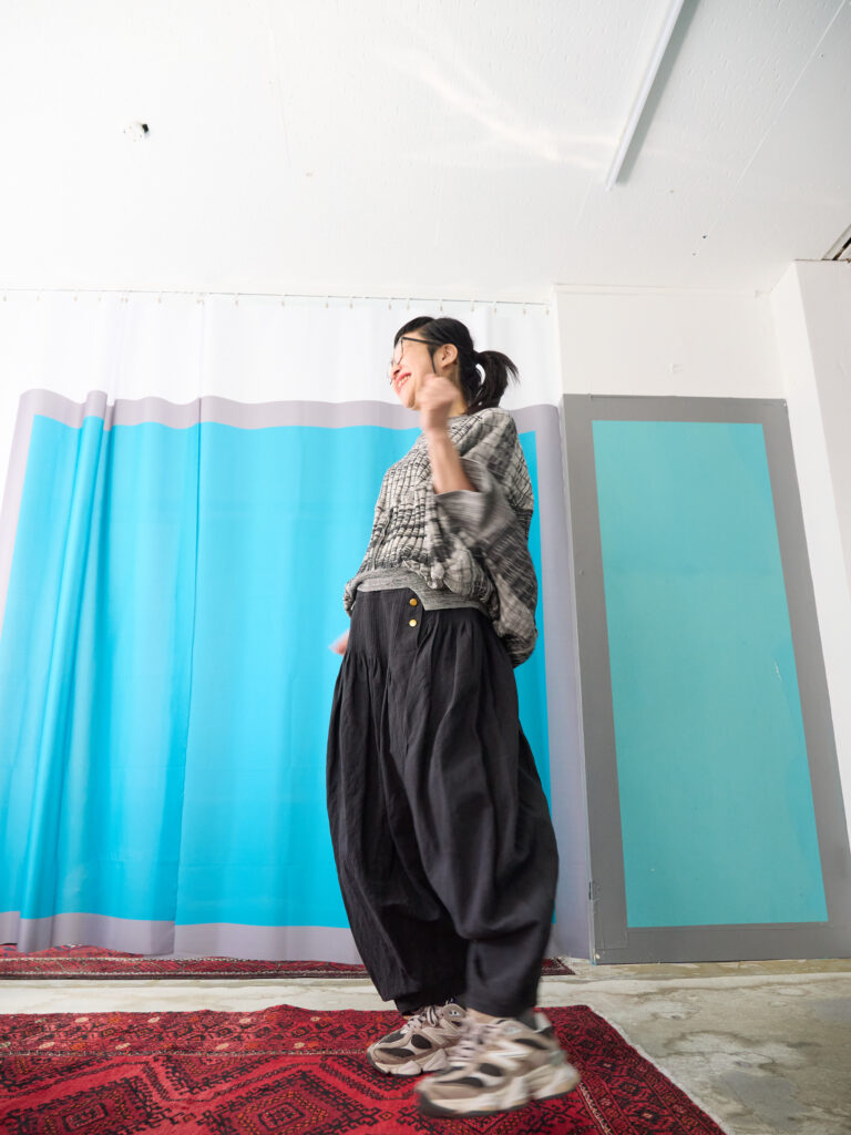 model 156cm Linen Cotton Gather Pants black BAKABON socks