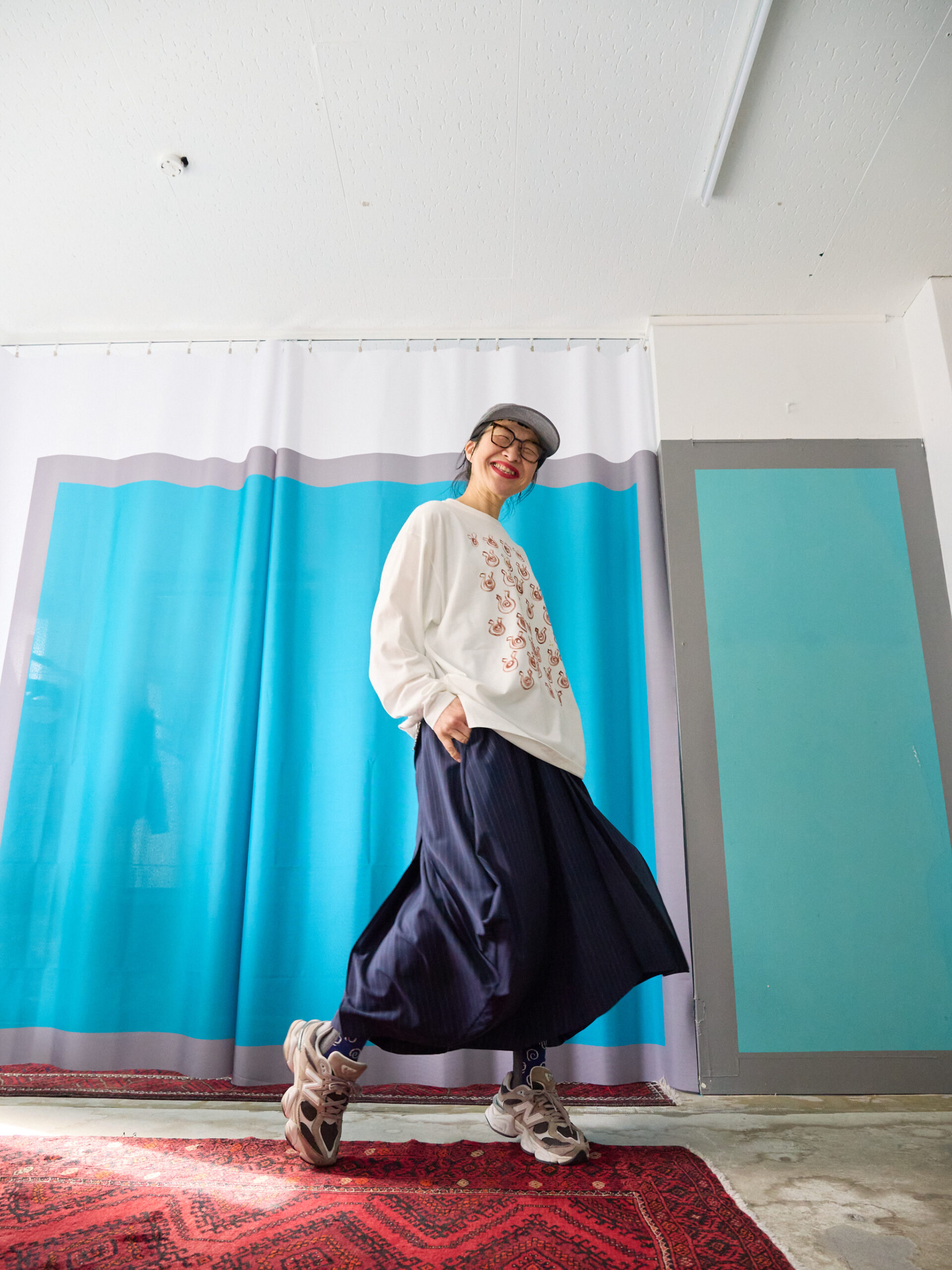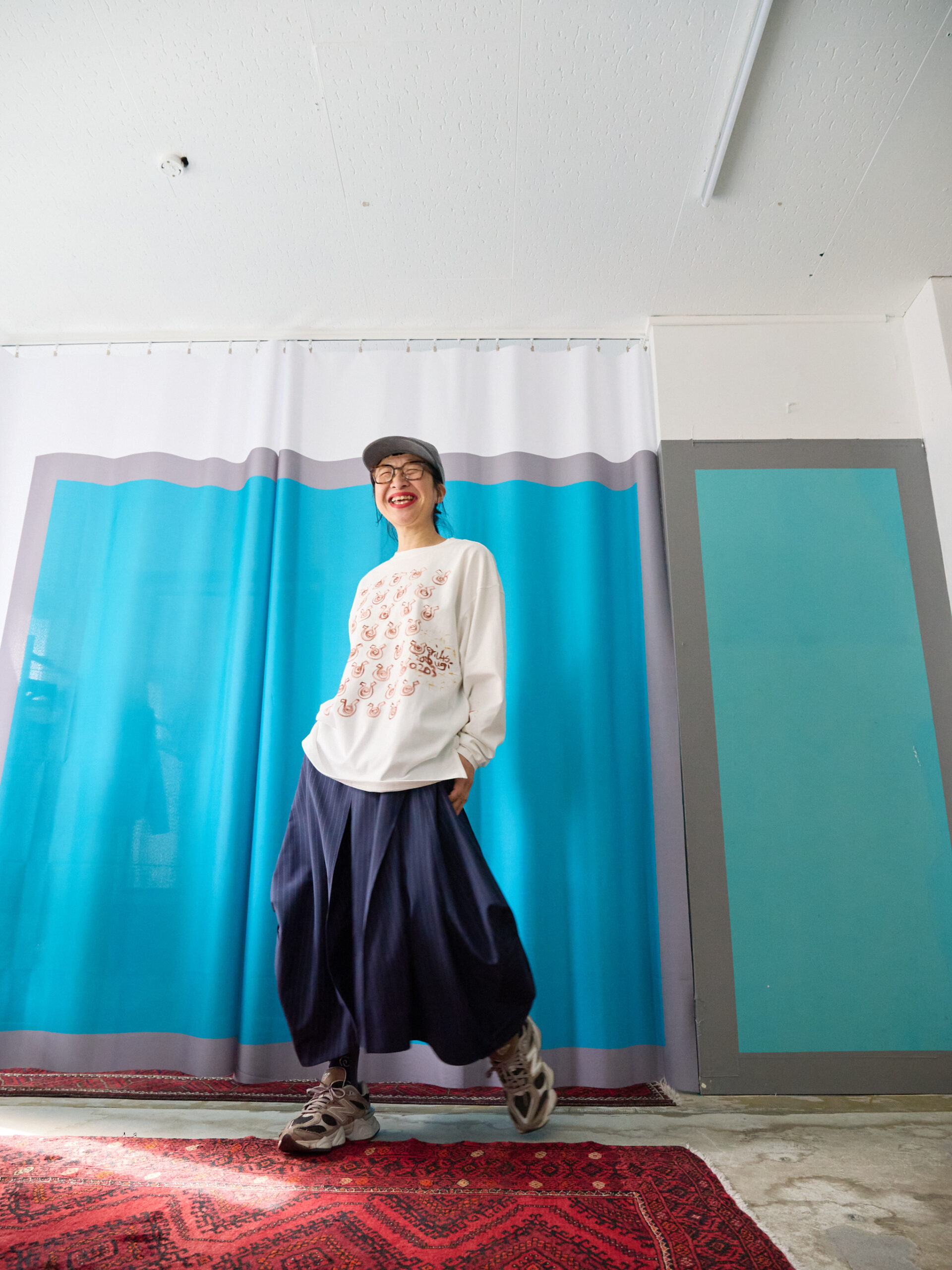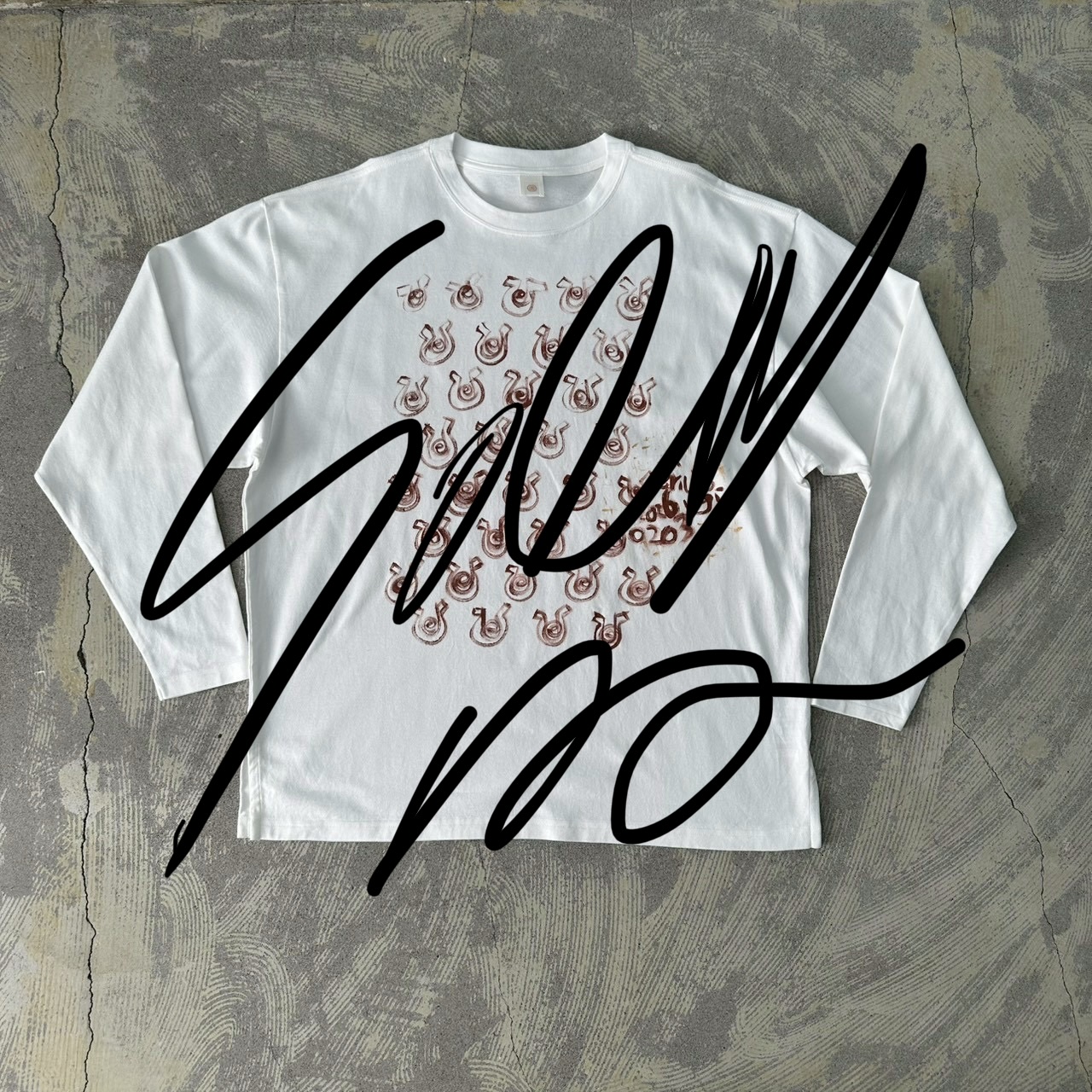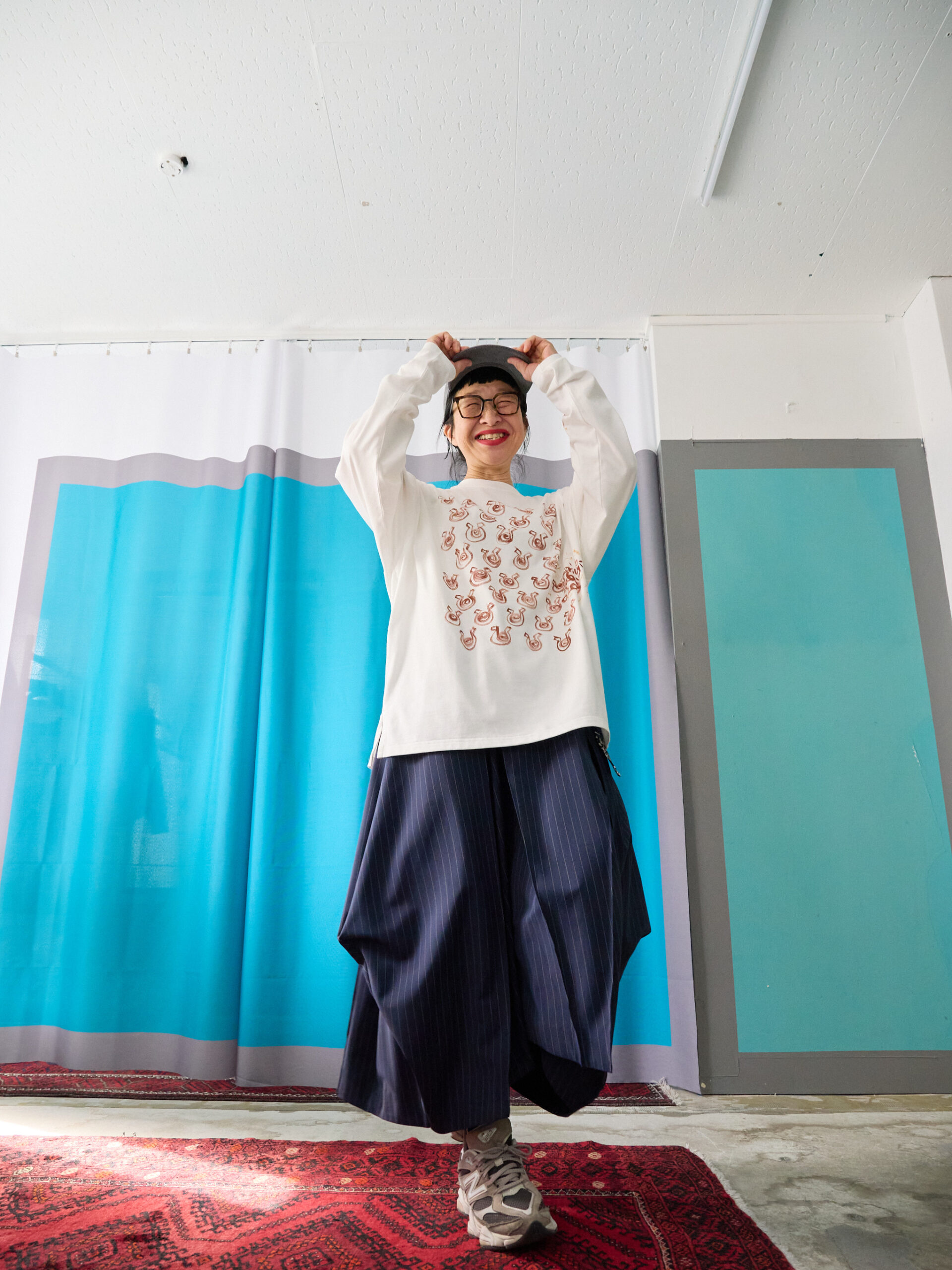 A hand-painted piece depicting recent moments. “Horseshoe-kun,” a talisman-like motif with an e-spiral inside the horseshoe, was born this year, the Year of the Horse. As I was painting, it somehow felt like an old Space Invaders game, bringing back a sense of nostalgia. It’s sure to help you run smoothly through this year ♡ Painted on Setsubun day, full of energy! This F size is recommended for men of a standard size, or for those who want to wear it casually in an oversized fit. A commemorative hand-painted long-sleeve T-shirt with the date it was painted. May this special piece become a keepsake for you as well ♡ Painted with acrylic paints. The garment is delivered after being washed once. Size Front length 70cm Back length 73cm Body width 126cm Hem circumference 117cm Shoulder width 57cm Sleeve length 87cm Cuff width 22cm Neck width 17cm Slit length 9.5cm Material 100% organic cotton Color e Horseshoe Parade