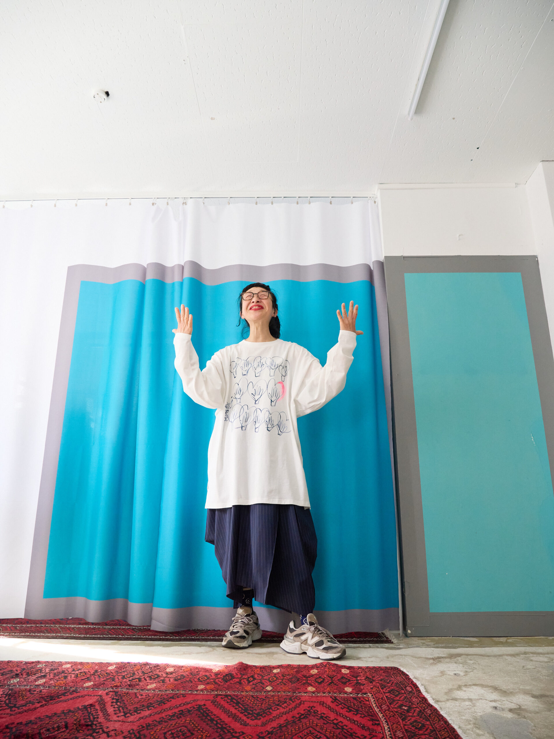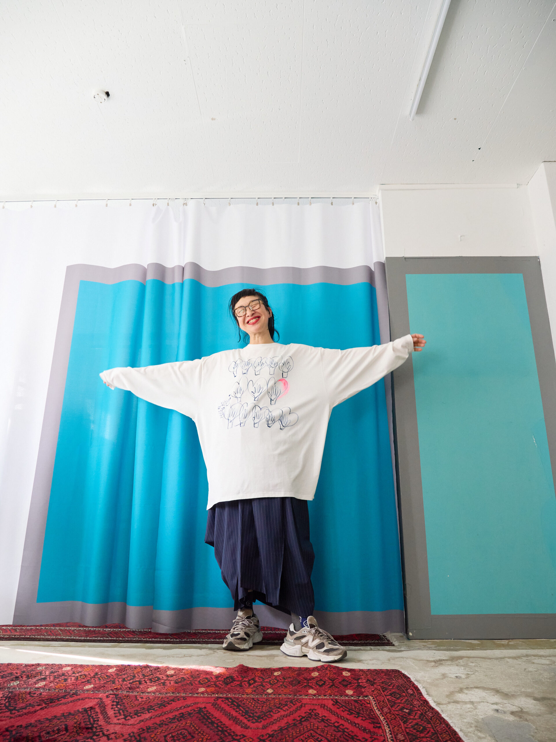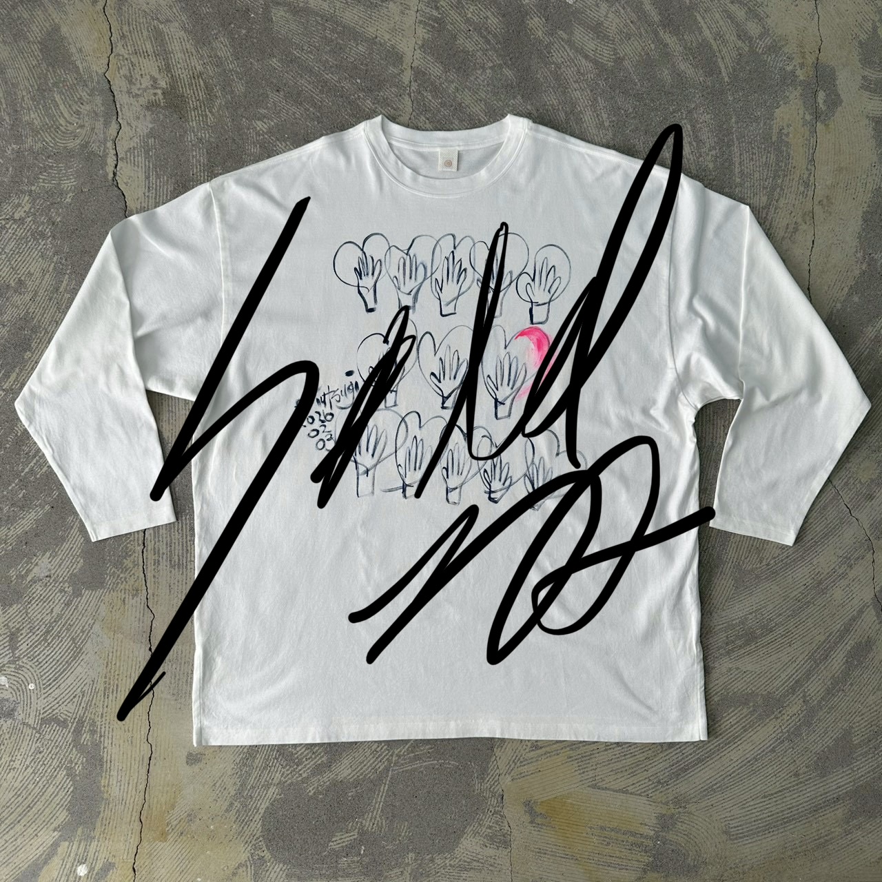 This hand-painted piece reflects my recent moments. Perhaps from using my hands too much, my hands have been hurting, making everyday tasks a little difficult. It made me realize once again how constantly overworked our hands are, and I felt a deep sense of gratitude for them. The SB size is recommended for larger men or for anyone who prefers to wear it casually in an oversized fit. With this BIG size, the sleeves can be puffed, and when worn tucked into bottoms with a puffed silhouette, it creates an elegant impression, which is why Utsugi loves wearing the SB size. This is a commemorative hand-painted long-sleeve T-shirt with the date it was painted. I hope this special piece becomes a keepsake for you as well. Painted with acrylic paint and delivered after being washed once. Size: Front length 82cm, Body width 132cm, Hem circumference 126cm, Sleeve length from center back 86cm, Cuff width 22cm, Neck width 16.5cm, Slit length 12cm. Material: 100% organic cotton. Color: These hands.