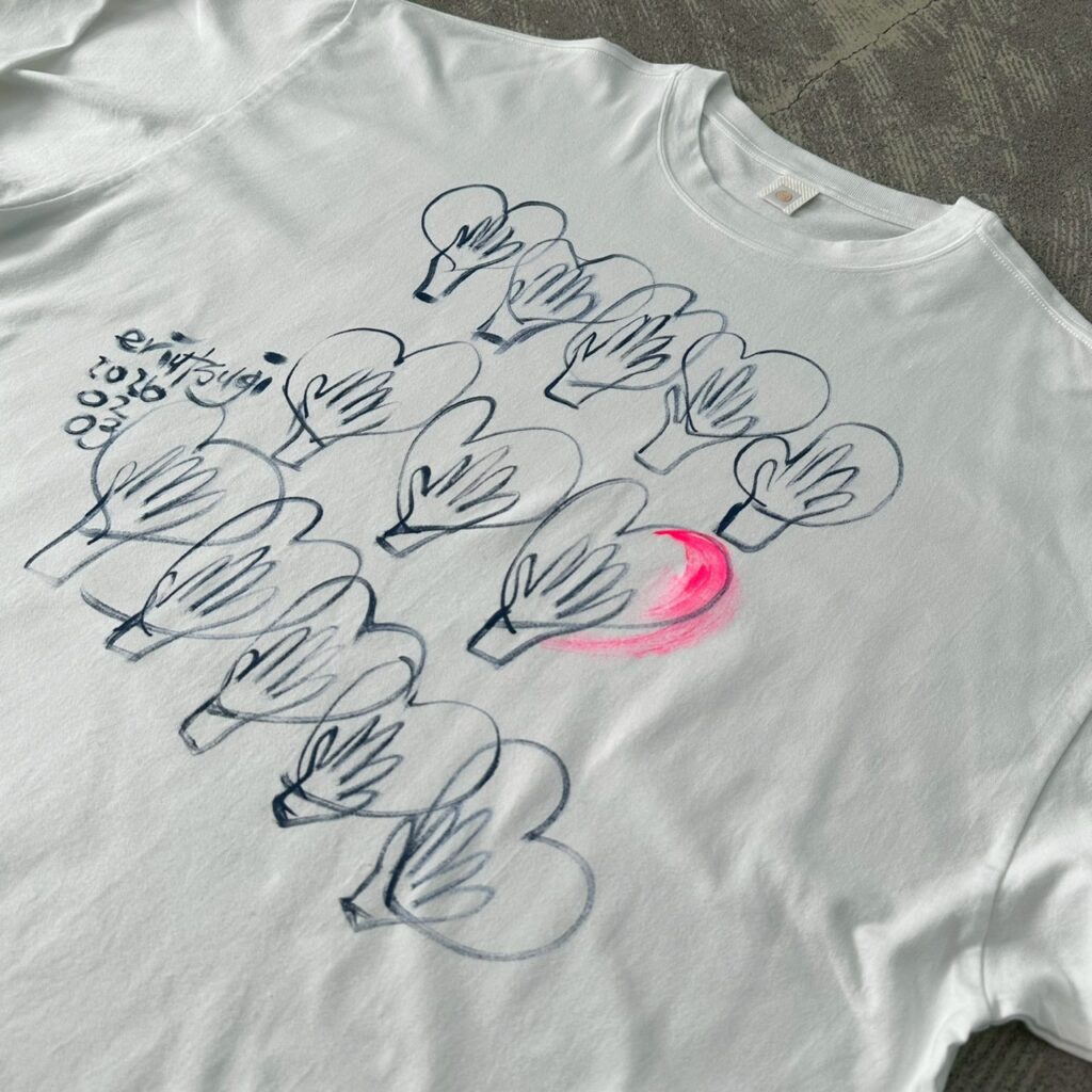 描いた日付け入りの、記念の「ハンドペイントロンT」。