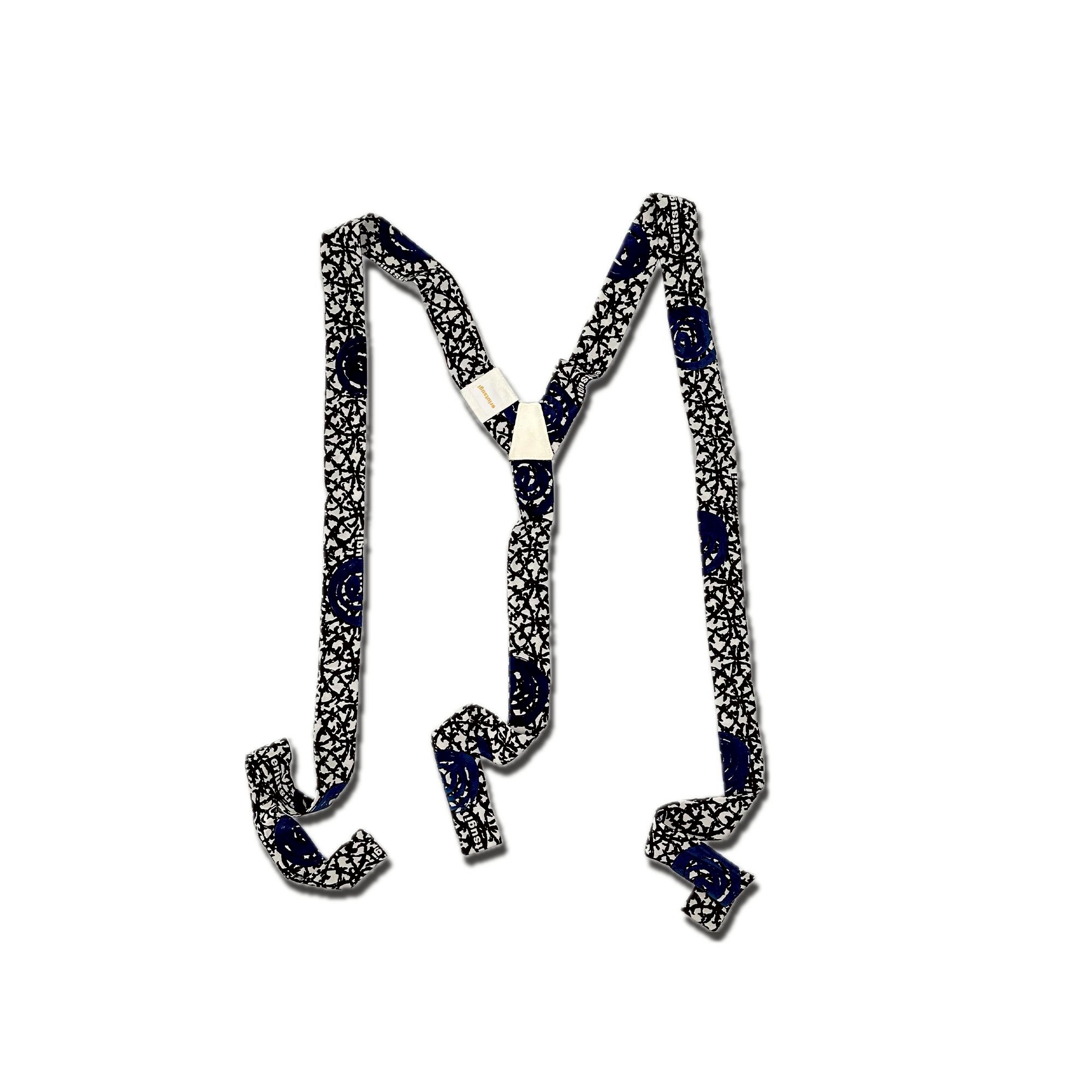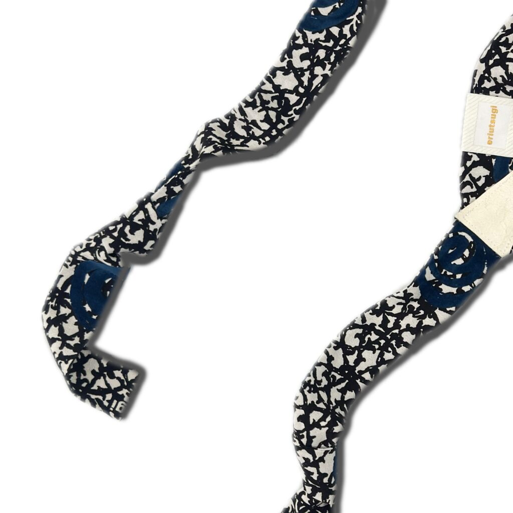 An accessory that adds a subtle sense of playfulness and something special to your styling. It can be tied to belt loops and worn as suspenders, draped around the neck like a tie or ribbon, or styled as a belt—enjoy arranging it in your own way. The calm NAVY color pairs beautifully with similar navy tones, looks clean and sharp with white or black, and creates a chic impression when matched with green, gray, or beige. It also works well with accent colors such as red, making it easy to incorporate into a wide range of styling. Designed to be enjoyed freely according to your mood and outfit, this piece expands the possibilities of your styling. It is also lovely when worn together with the matching chirimen logo scrunchie, styled with a suit-like sensibility. An item that adds just a touch of playful charm to your everyday look. Available as a limited-quantity preorder, with delivery scheduled for mid-February.[Size] Shoulderstrap length: 105 cm / Back strap length: 44 cm / Width: 3.2 cm[Material] Rayon / Leather[Color]Navy Limited-quantity preorder Estimated delivery: mid-February
